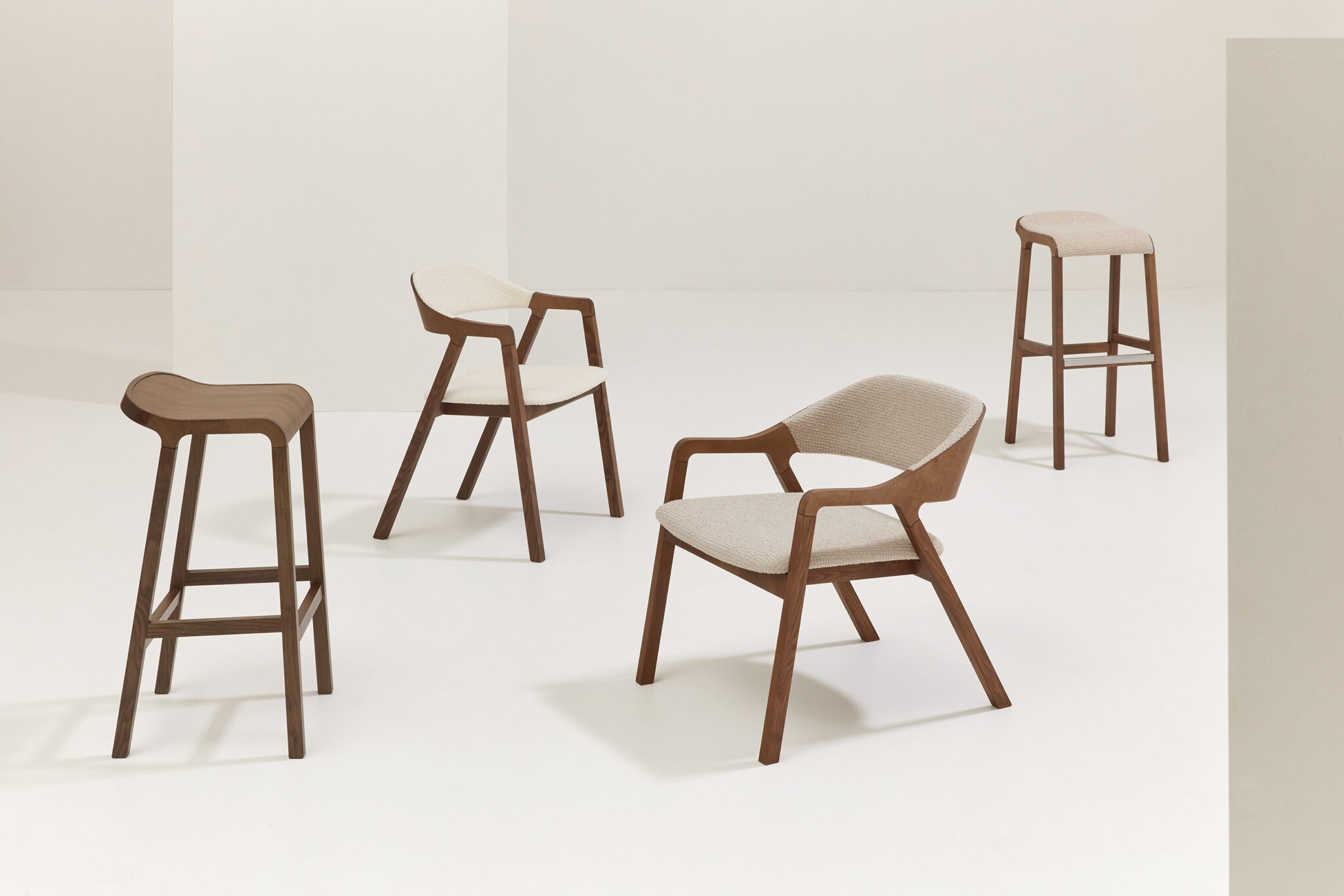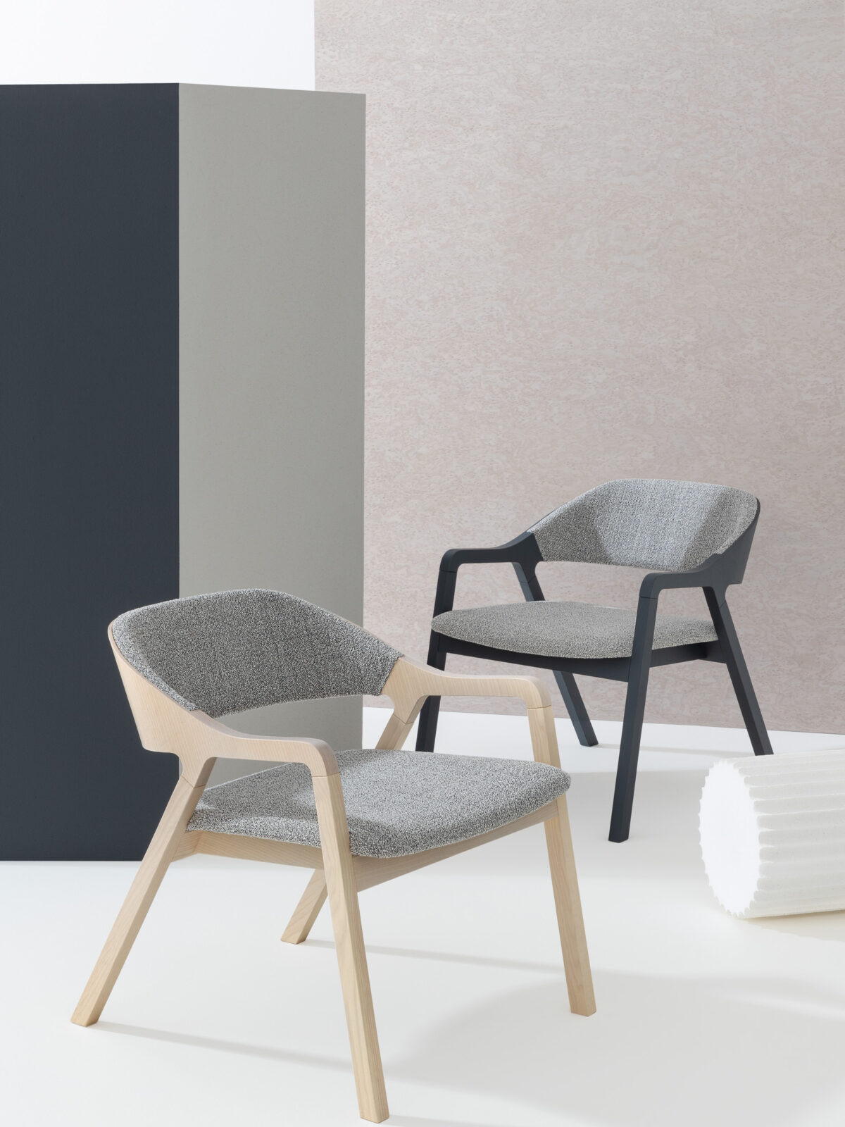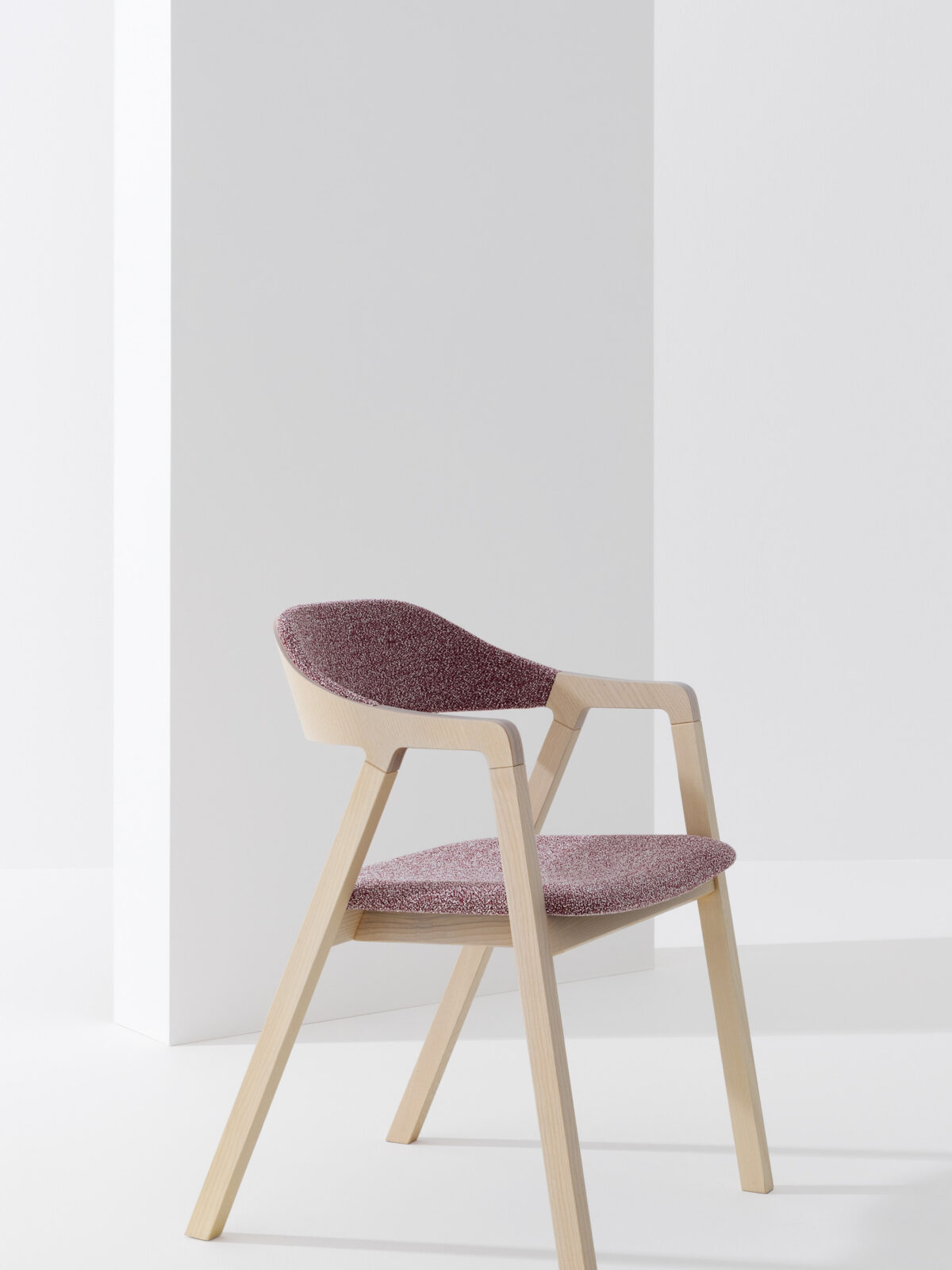 Michael Geldmacher décrit Layer comme un fauteuil qui semble avoir toujours existé malgré sa nouveauté – le simple résultat d’une œuvre complexe dans laquelle l’esthétique et la capacité constructive s’entremêlent. Sur les pieds évasés en frêne se trouve un cadre en contreplaqué qui intègre l’accoudoir et le dossier rembourrés, où le design et le matériau sont synchronisés. Conçu comme un fauteuil, Layer a ensuite évolué pour inclure les versions salon et tabouret de bar.