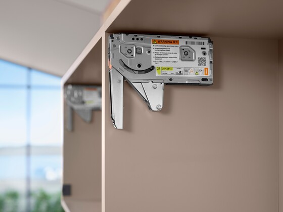 La taille de la ferrure pour porte relevable pivotante est compacte et séduit par ses nombreuses fonctions intégrées. C'est ce qui fait d'AVENTOS HK top la solution idéale pour les meubles où chaque détail compte.