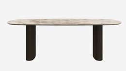 Santiago s’illustre par ses courbes et son plateau de table ovale ou rond pour un look et une sensation organiques contemporains.