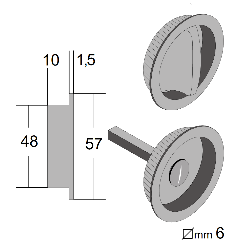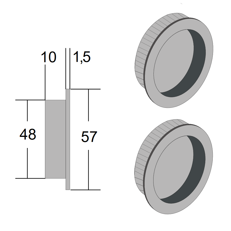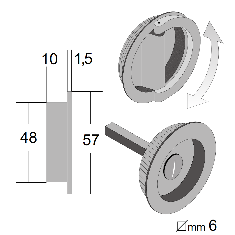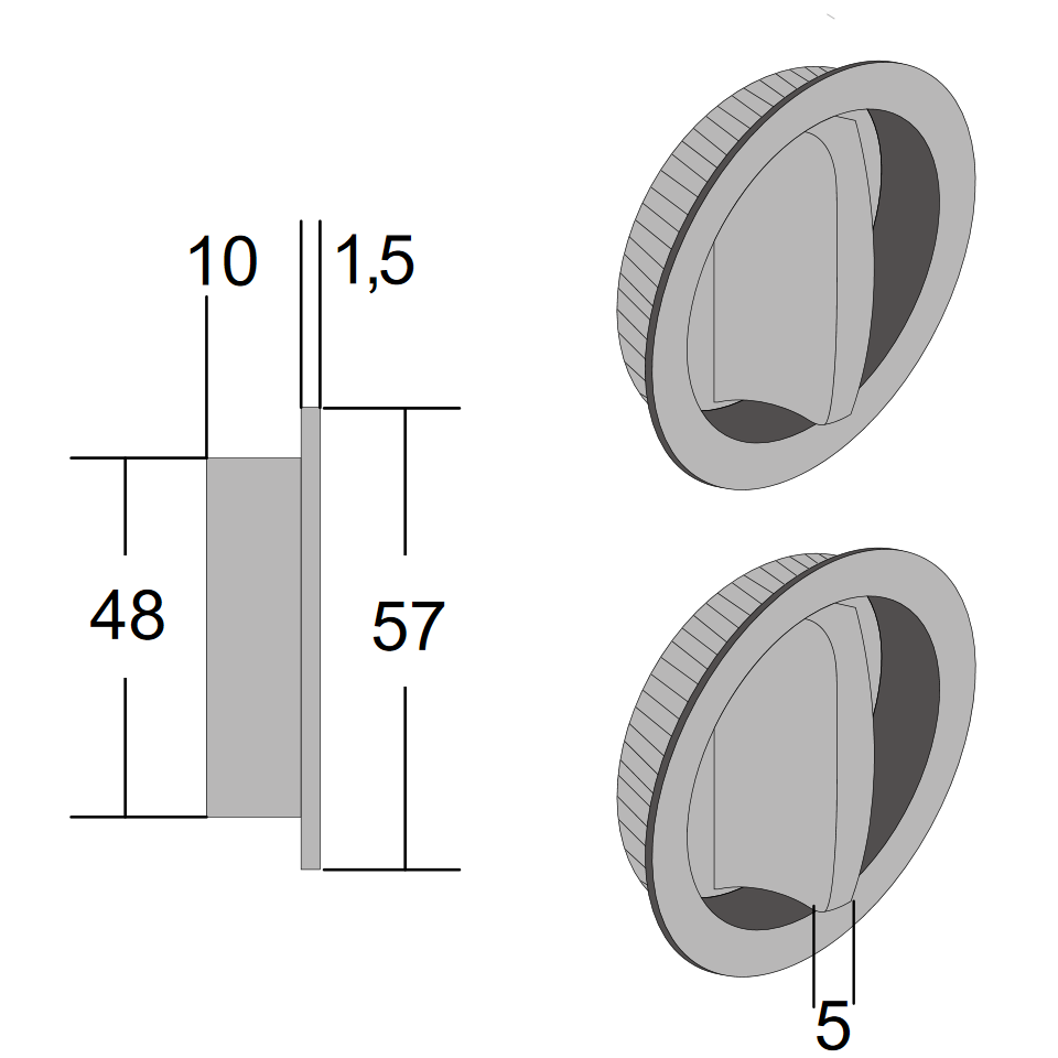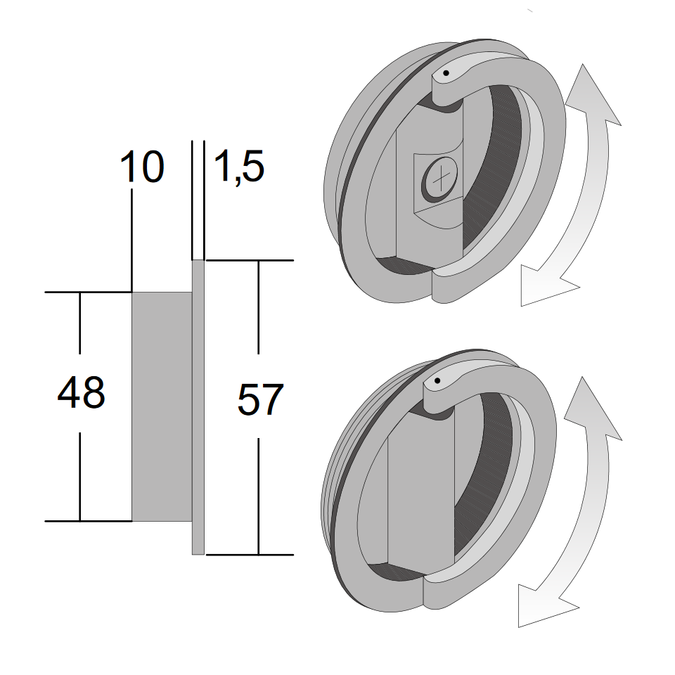 Packaging in casket with 1 lock, 1 striking plate, 4 screws, 1 pair of handles Ø 48 mm.