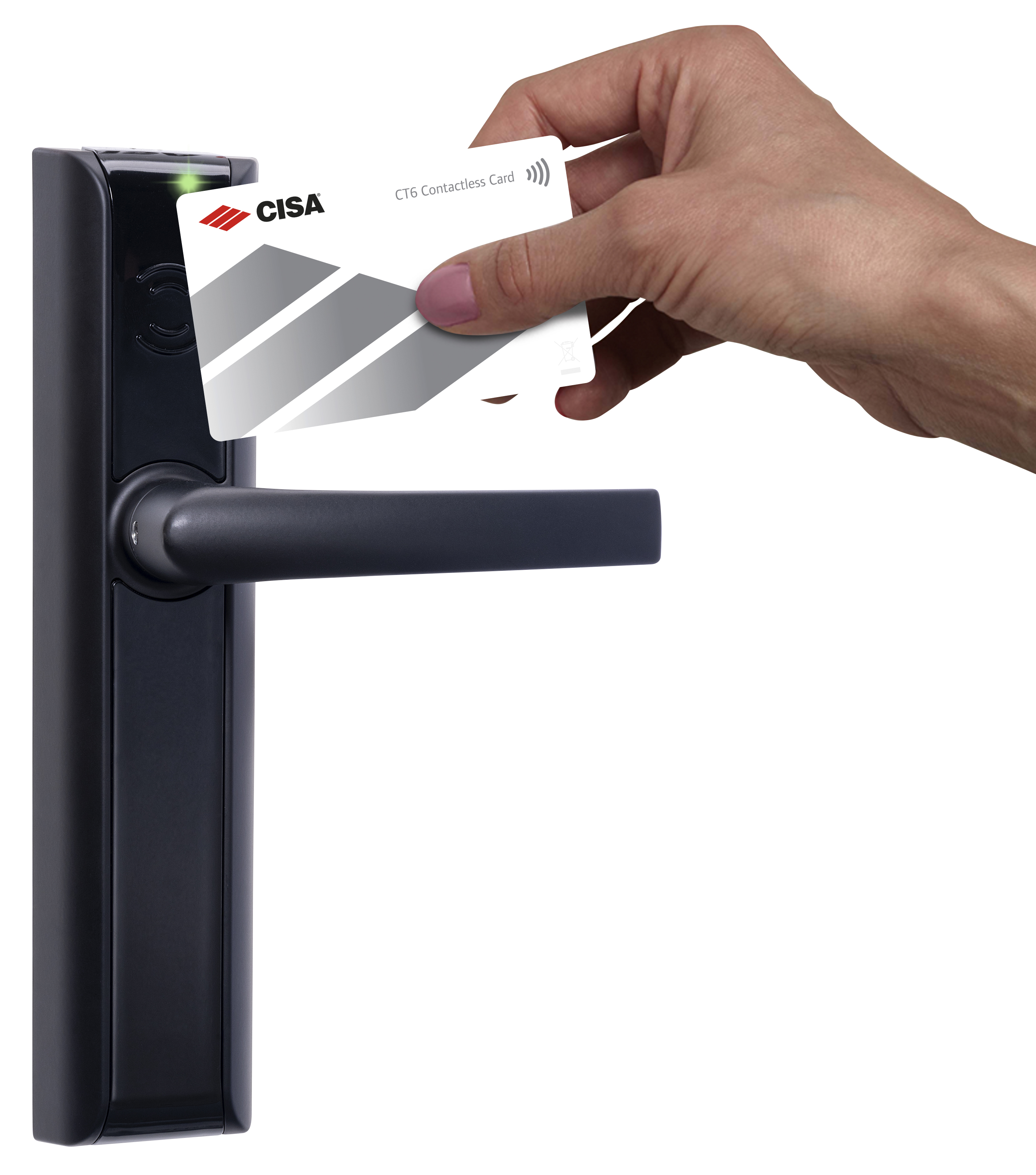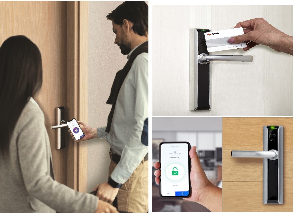 Serrure électronique sans contact CISA eSIGNO idéale pour le marché de l'hôtellerie et des résidences de service. - Gestion et contrôle des accès - Facilité d’installation - sans câblage - Alimentation par piles - Communication sans fil - Technologie sans contact - Ouverture avec carte / badge NFC et avec smartphone via Bluetooth Low Energy - Logiciel de gestion en ligne (CISA® AERO) ou sur PC (CISA SSW4) pour suivre instantanément l’état opérationnel du système, des risques de sécurité potentiels, des tâches de maintenance à venir, etc.