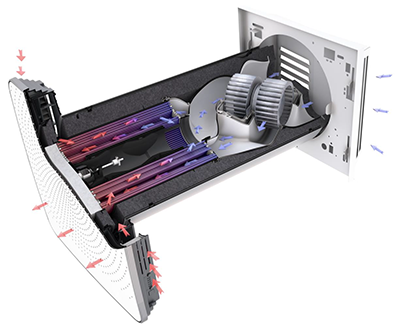 L'air 70 est la solution idéale qui regroupe toutes les caractéristiques pour une ventilation avec récupération de chaleur en un seul appareil compact. C'est l'appareil de ventilation double flux décentralisé le plus silencieux du marché. Aucune gaine d'air n'est nécessaire. L'Air 70 est de ce fait particulièrement adapté pour la ventilation d'espaces indépendants.