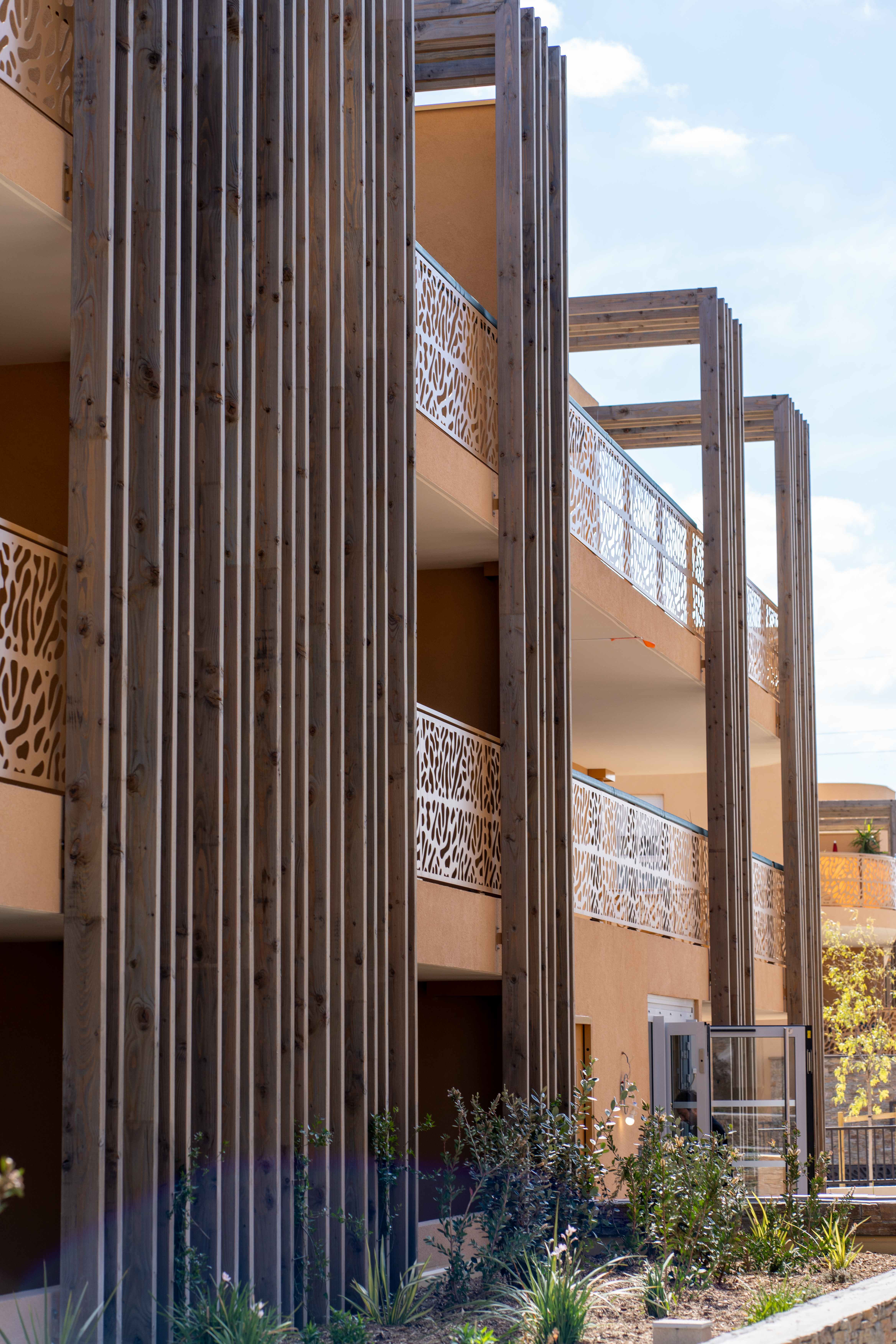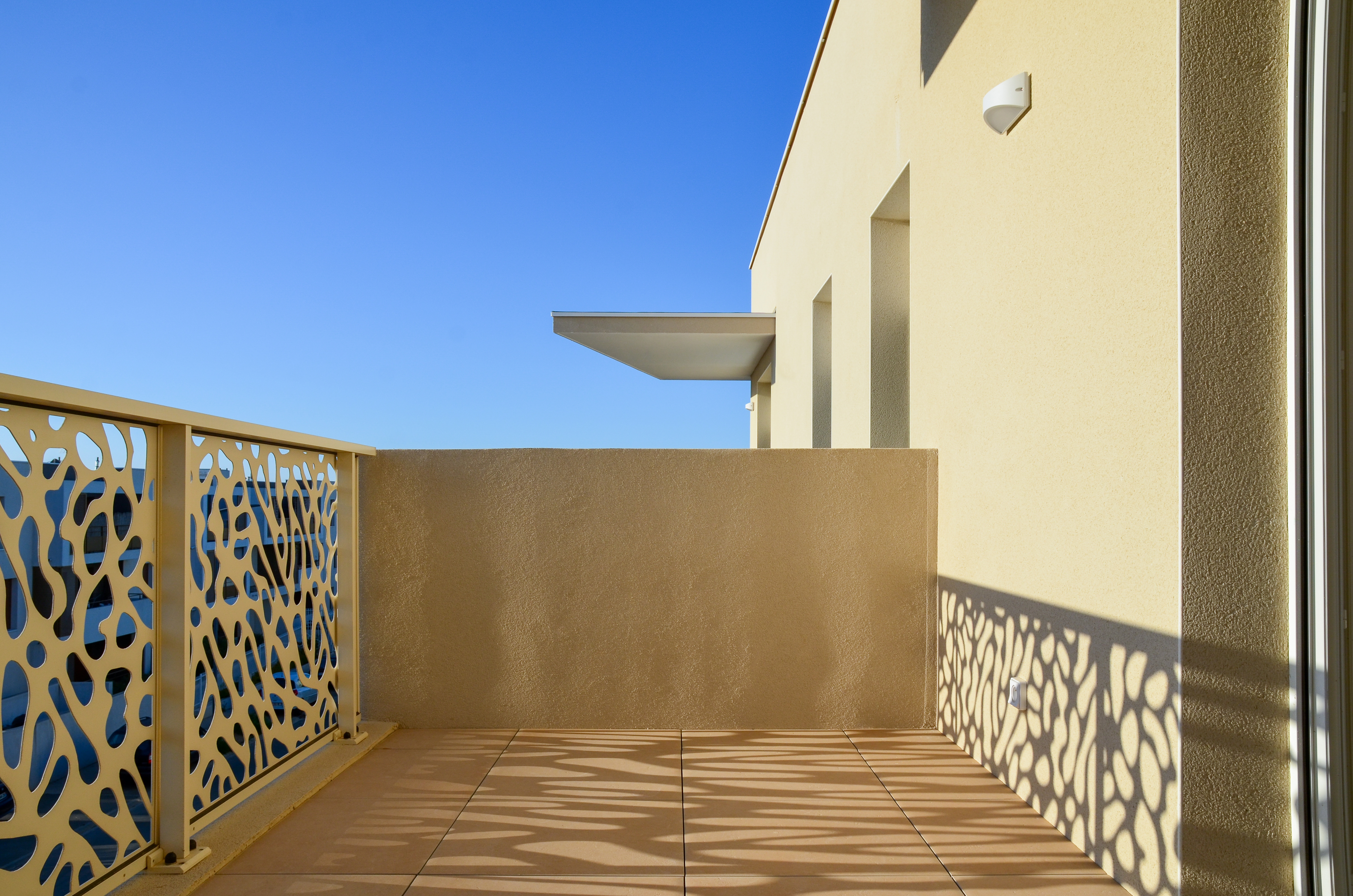 - Des jeux d'ombres et de lumière s'ajoutent à la mise en volume de l'espace des terrasse, pour une façade harmonieuse.