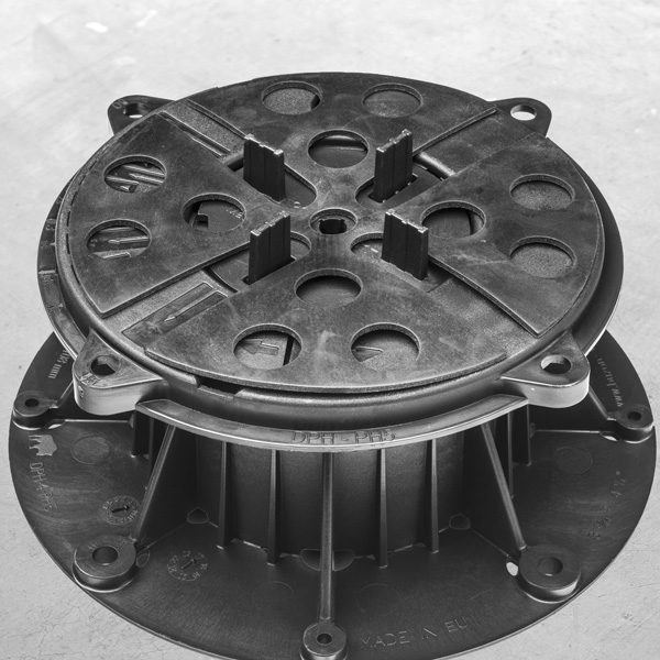 Le produit DPH : le plot en polypropylène des espaces publics - Plot reglable terrasse du fabricant buzon world classé dans la catégorie Aménagement exterieur > Revêtement de sol extérieur > Plot ajustable est référencé dans la Matériauthèque digitale Materiaux.archi.