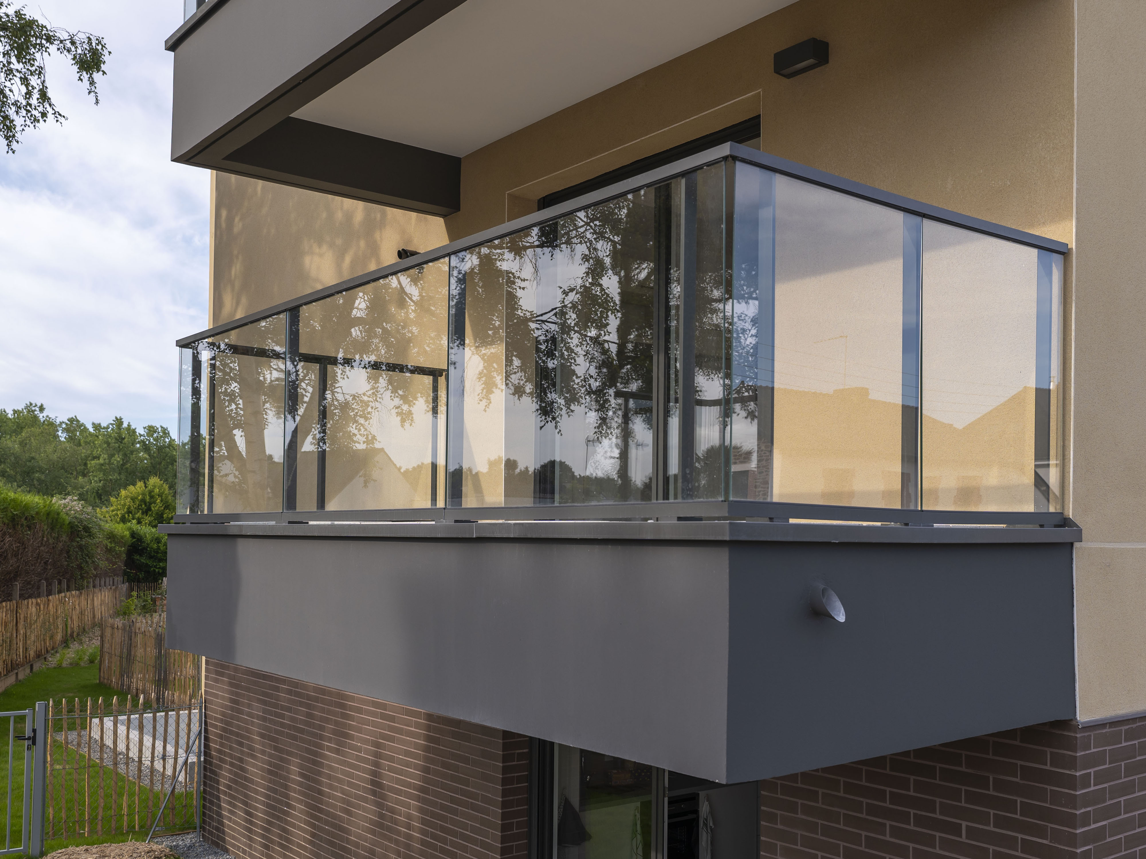 Le garde-corps vitré filant KLAIR allie élégance et fonctionnalité, offrant une protection optimale sans compromettre l'esthétique.