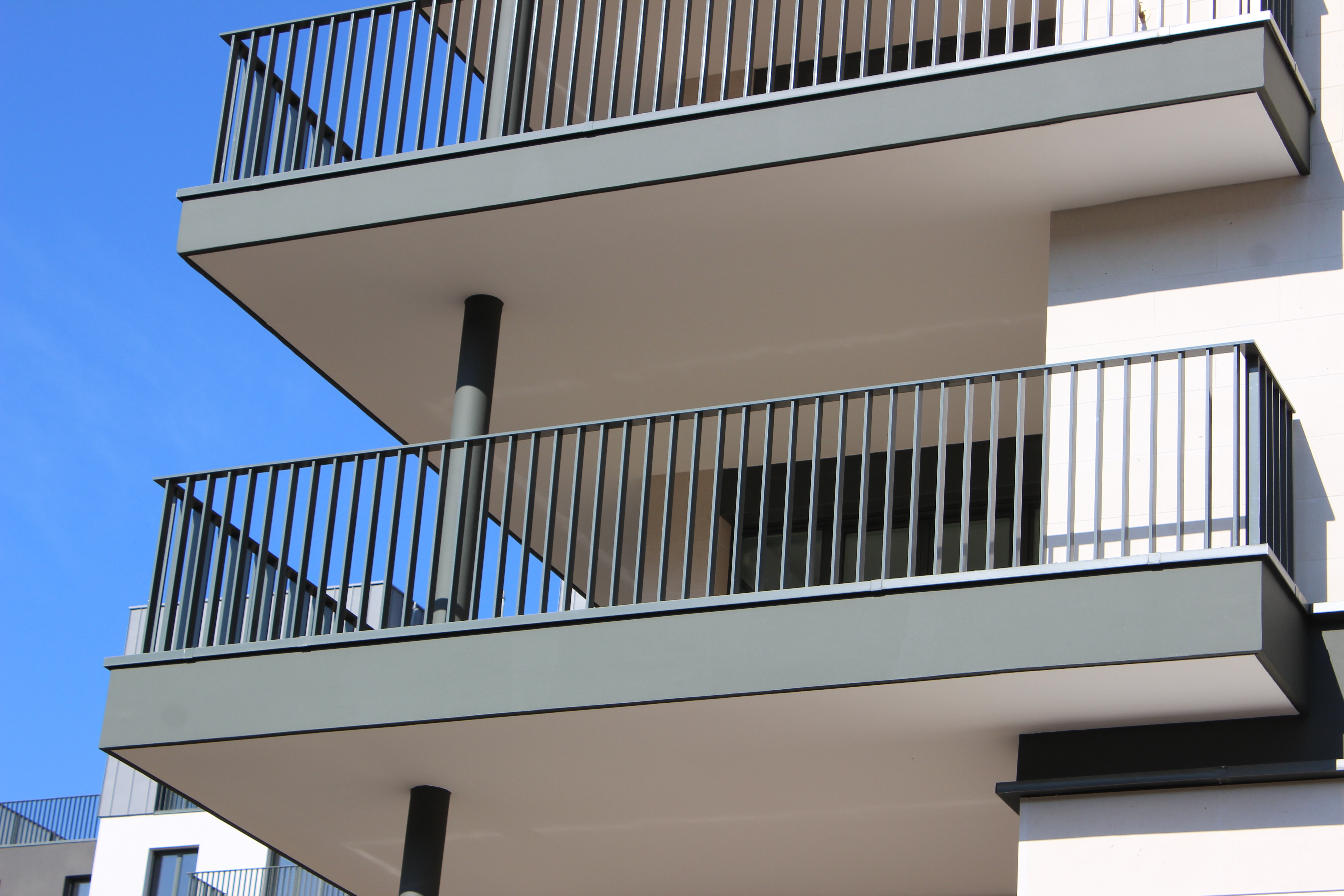 Le garde-corps barreaudé axé KAPITALE joue avec les lignes pour dynamiser l'architecture. Avec des barreaux droits ou orientés à 30 degrés, il crée l'illusion d'un bâtiment en mouvement, apportant vie et fluidité aux façades.