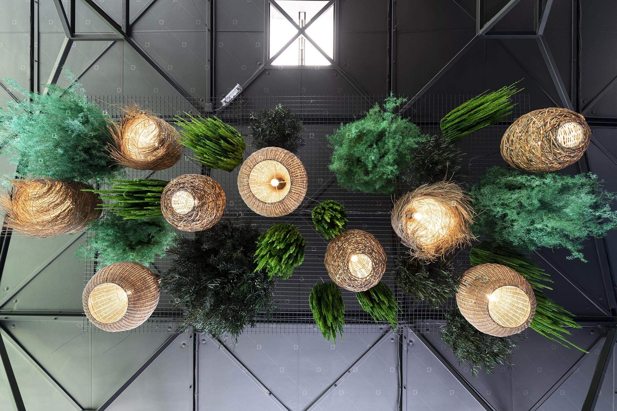 Suspensions végétales – Plafond végétal Un projet exceptionnel pour un concept unique. Bienvenue à l’Extra, premier restaurant associatif de Reims ! Un plafond végétal au service de la gastronomie et du bien être. Du végétal au plafond ! Le plafond végétal est devenu une tendance croissante dans le domaine de la décoration intérieure. Il confère