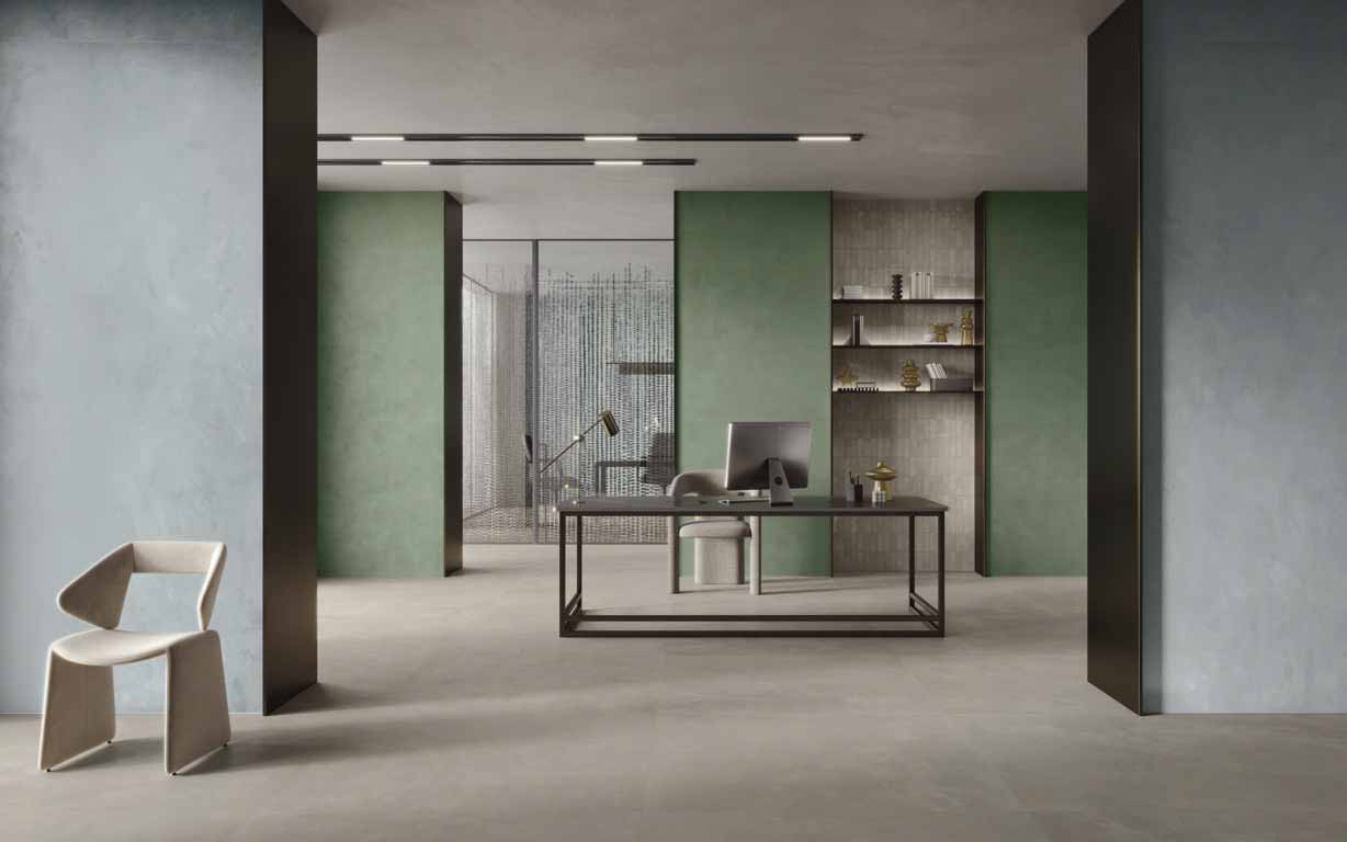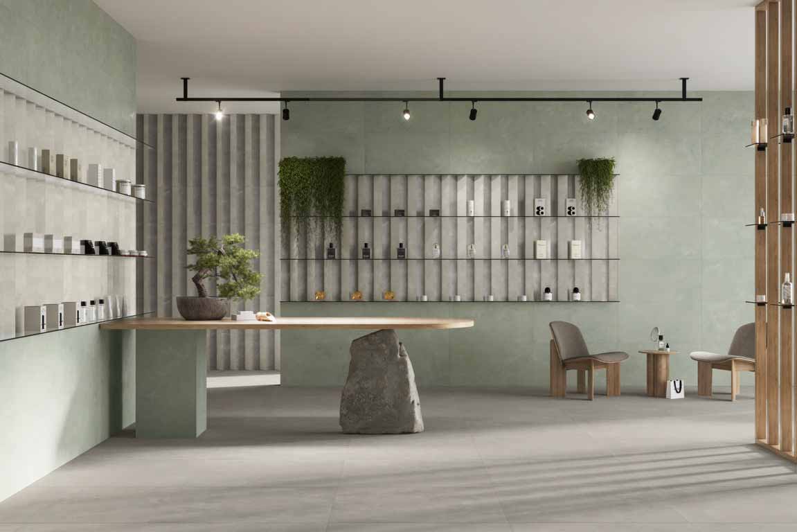 L’idée du projet est de marier la modernité du ciment et l’élégance de la résine au sein du même produit. C’est ainsi qu’est née cette collection de grès cérame, une matière précieuse pour des surfaces souples et une utilisation polyvalente