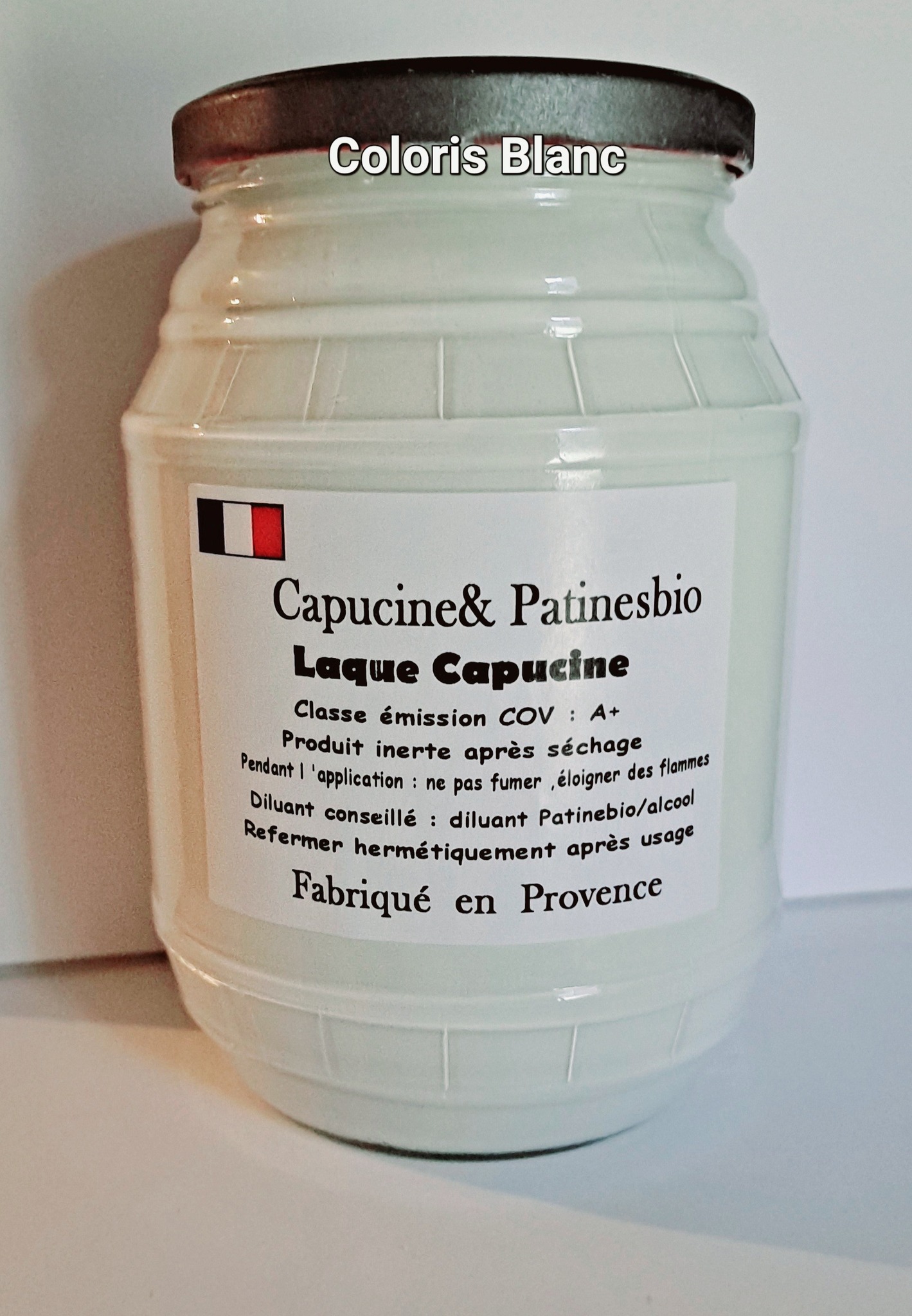 Le produit Laque naturelle Capucine de Capucine & Patinesbio existe dans les coloris : Blanc Jaune Orange Terracotta Rouge Bordeaux Rose Violet Bleu Vert Brun Gris Noir .