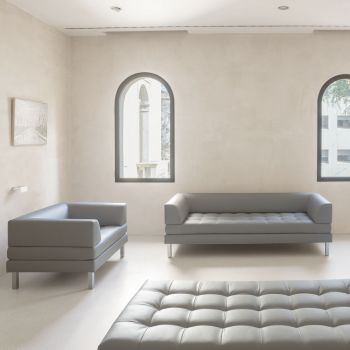Le programme Moma propose des canapés aux lignes modernes en jouant sur une vague saveur rétro conférée de par le travail capitonné qui caractérise l’assise des canapés, des fauteuils.Cette collection est caractérisée par des dimensions compactes comme l’exige un environnement de travail, avec dossiers bas et profonds et des assises très larges. MOMA a une coque en bois multiplis (un plus qualitatif qui n’est pas indifférent là où l’on trouve normalement des panneaux de particules), assemblés avec des ferrures en acier galvanisé et des pieds à section carrée en aluminium anodisé avec du nylon sous le pied. L’important rembourrage est constitué de mousse de polyuréthane d’une épaisseur et d’une densité appropriées.L’ouvrage capitonné réalisé à la main embellit la surface du dessus de siège en donnant une touche d’atmosphère du XXe siècle.