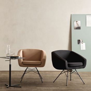 Le fauteuil Aiko, version haute, a été dessiné pour les espaces d'accueil.