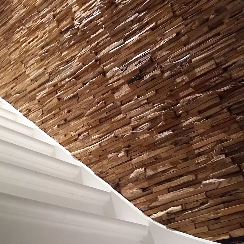Le Panneau Décoratif Chêne 3D Fumé transforme chaque espace en une œuvre d'art vivante. Ce revêtement mural, conçu avec du chêne local soigneusement récupéré et traité pour obtenir une finition fumée captivante, présente un motif géométrique en relief qui ajoute sophistication et profondeur à votre décor.