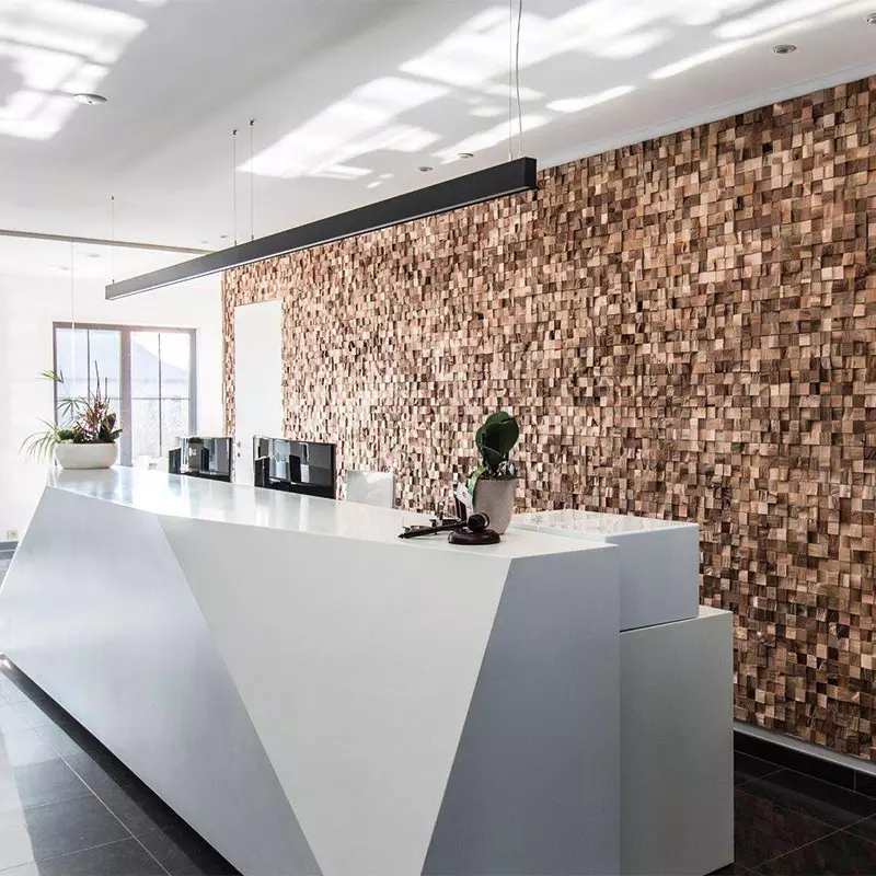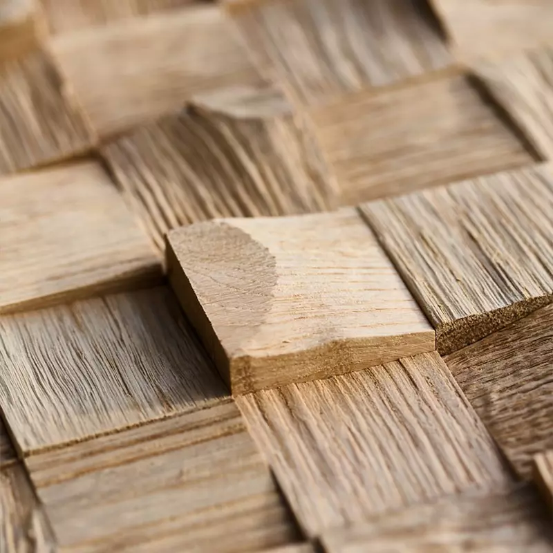 Fabriqué à partir d'essences de chêne locales ou recyclées, ce revêtement mural rend hommage à la beauté de l'environnement naturel tout en adoptant une approche durable.