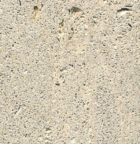 Aspect : Gris beige, à grains fins ronds, serrés avec nombreuses vacuoles