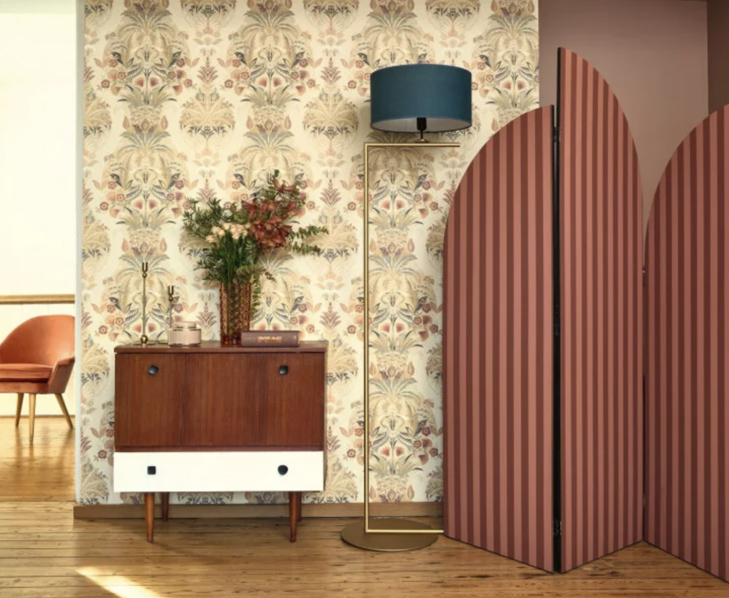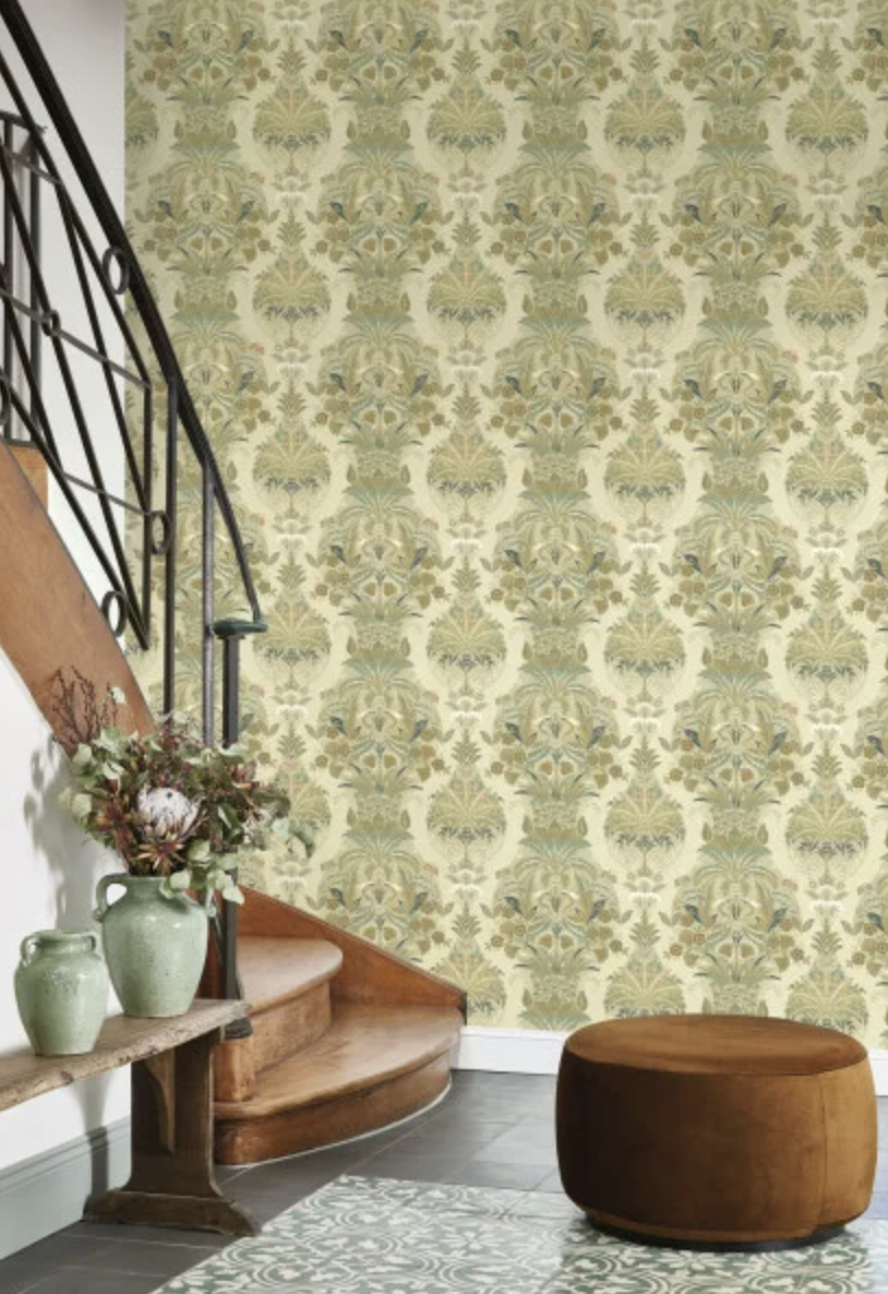 Bouquet royal. Dans la plus pure tradition d’Héritage, Whisper rappellera les papiers-peints vintage posés dans les maisons de famille. Cet entrelac savant d’oiseaux au plumage gracieux, de palmiers élancés et de fleurs exotiques vous transportent dans un ailleurs inspirant.