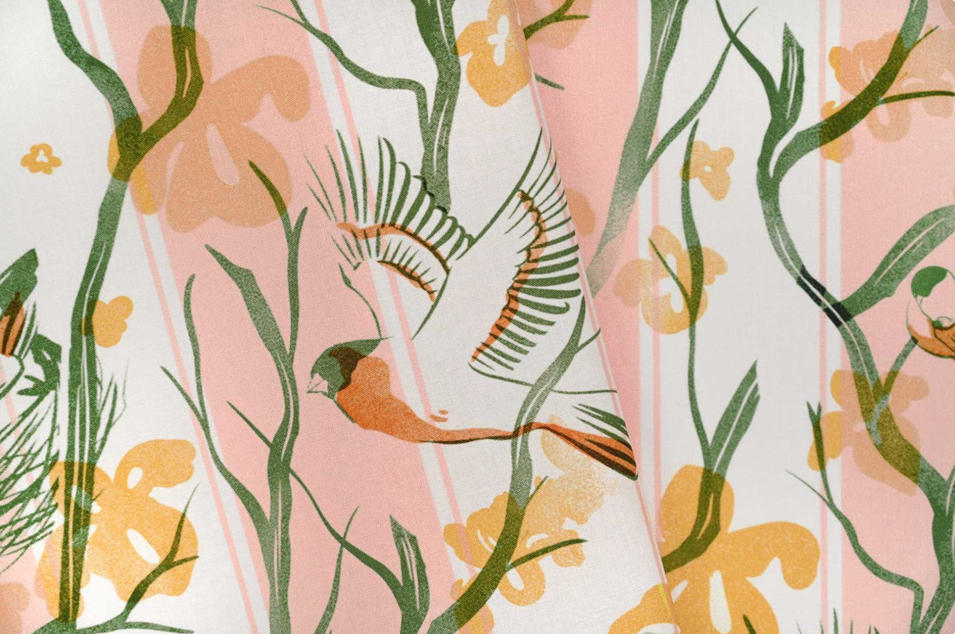 "Mon motif illustre les différentes étapes de la vie d’un oiseau, ornementé et protégé par les fleurs d’iris. Avec cette création, je souhaite sensibiliser le public à la préservation de l’environnement."