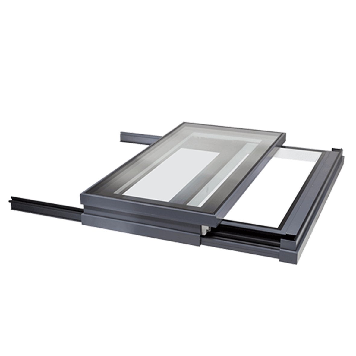 Ce système coulissant ouvre totalement votre plafond au ciel et à la lumière zénithale sur une surface jusqu’à 4,8m². Le panneau coulisse sur deux rails installés sur le toit..