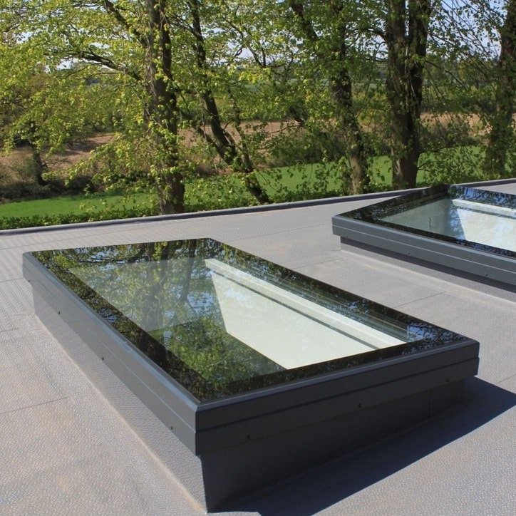 Les dimensions maximum de passage sont 80x370cm ou 100x260cm en rectangle et 140x140cm en carré. Le châssis est posé d’un bloc et fixé sur une costière de 10cm de largeur avec un relevé étanche.