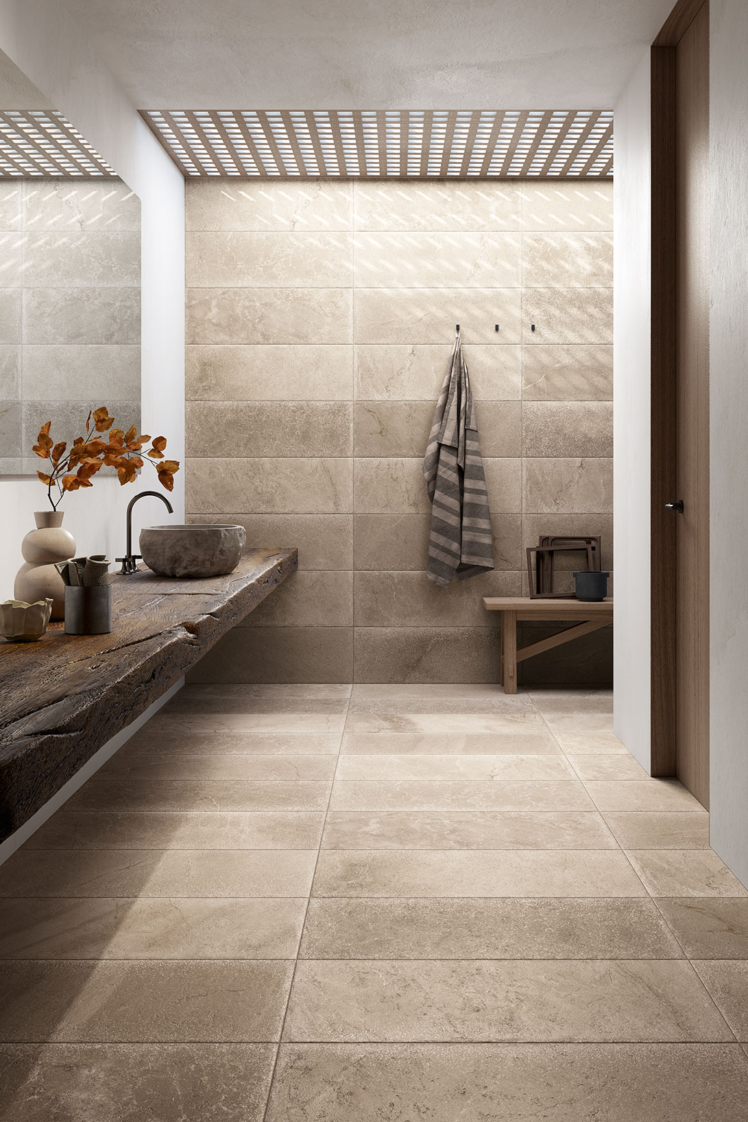 La collection s’inspire de la Pierre Massive et de la tradition d’une technique de construction à sec, qui utilise des blocs de pierre massifs pour donner une forme à des édifices parfaitement intégrés dans leurs contextes, tels que les temples et les architectures du passé. Coem a trouvé dans les potentialités techniques du grès cérame effet pierre la forme la meilleure, la plus fonctionnelle et, par conséquent, la plus belle aussi, pour transformer une pierre monolithique en une surface contemporaine capable de transmettre du charme à chaque espace. Calibrée dans les tons et dans les effets variés de dénuançage, Massive Stone se compose d’une vaste gamme de formats et de finitions pour se coordonner avec caractère au monde du design d’intérieur contemporain.