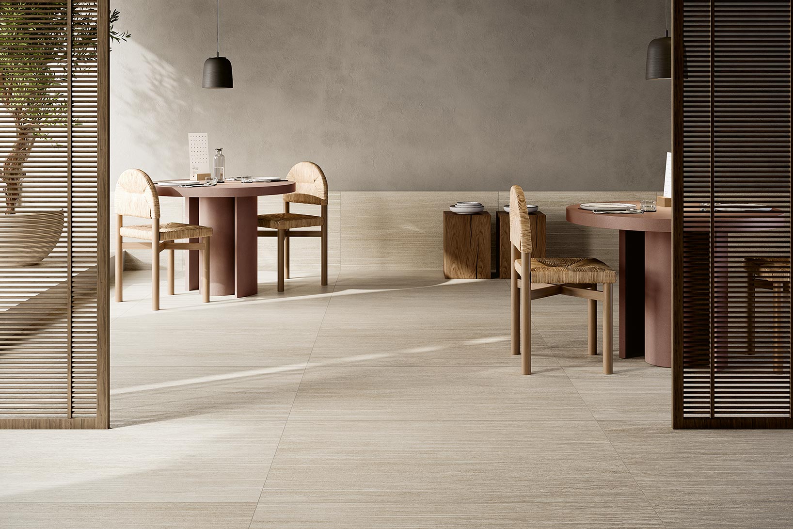 Les carreaux effet pierre de Versatile célèbrent la flexibilité de la pierre Portland, en offrant de nombreuses possibilités d’utilisation et d’assortiment, qui s’étendent du traditionnel à l’ultramoderne, en conférant un style atemporel. L’une des caractéristiques fascinantes de cette pierre réside dans sa variabilité en fonction de la direction de la coupe. Avec Versatile Vein, l’esthétique du vein-cut est recréé en emphatisant la veinure linéaire qui donne naissance à une énergie dynamique capable de se distinguer dans chaque environnement, tandis que la variante Deco Vein propose un entrelacement de graphisme et de structure extrêmement caractérisant et décoratif, tout en conservant un aspect agréable et contemporain.