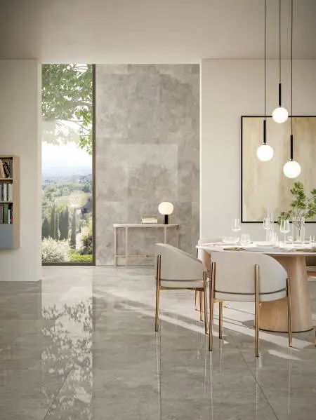 Une surface sobre et harmonieuse, en mesure de transformer les espaces et de devenir protagoniste, grâce à l’élégance issue de la texture naturelle. S’inspirant d’une pierre calcaire qui provient de la péninsule ibérique, Pedra Azul se caractérise par un graphisme légèrement ondulé, où les zones claires et les auréoles foncées sont alternées dans un savant équilibre des formes. La présence de délicates incrustations de fossiles enrichit et définit une surface savamment équilibrée.
