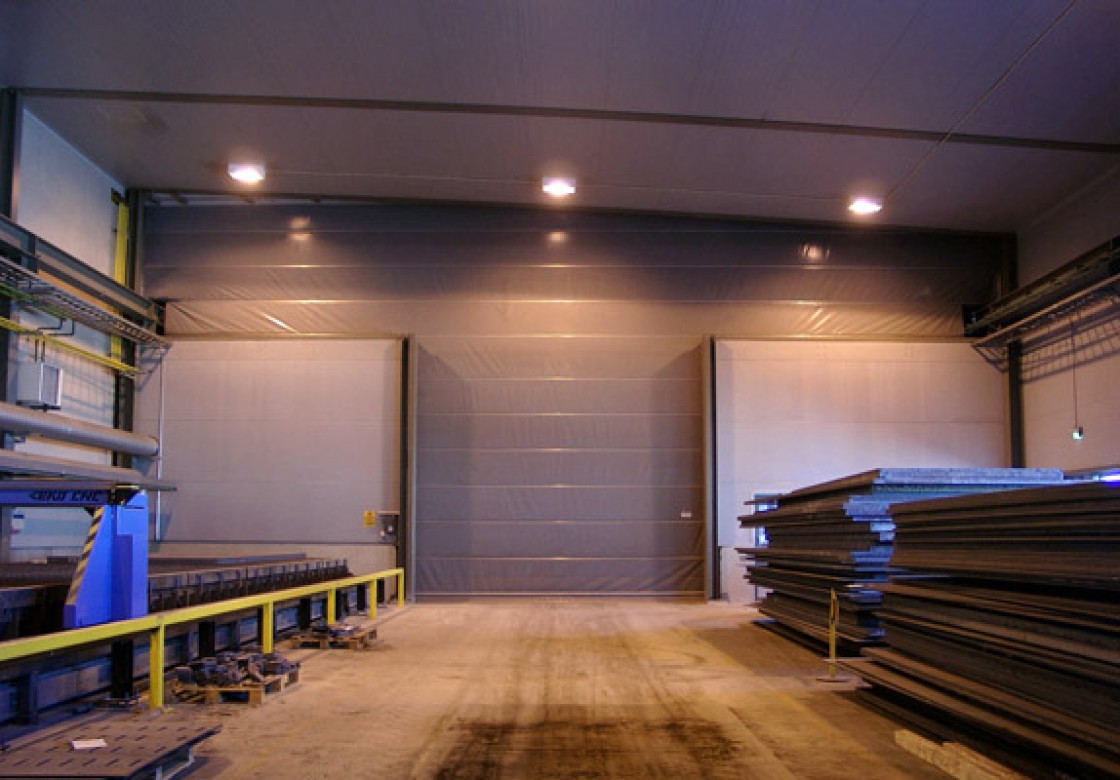 La technologie de portes sectionnelles textiles de Champion Door est idéale pour les ouvertures inhabituelles de grandes dimensions requises dans le secteur industriel.