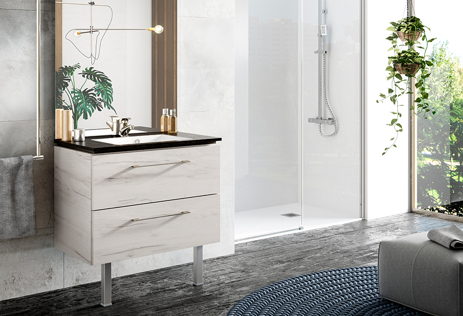Le produit Meuble de salle de bain INFINITI tiroirs poignées - Chêne Vert de CHENE VERT est prescrit dans des projets de type : Habitat individuel .