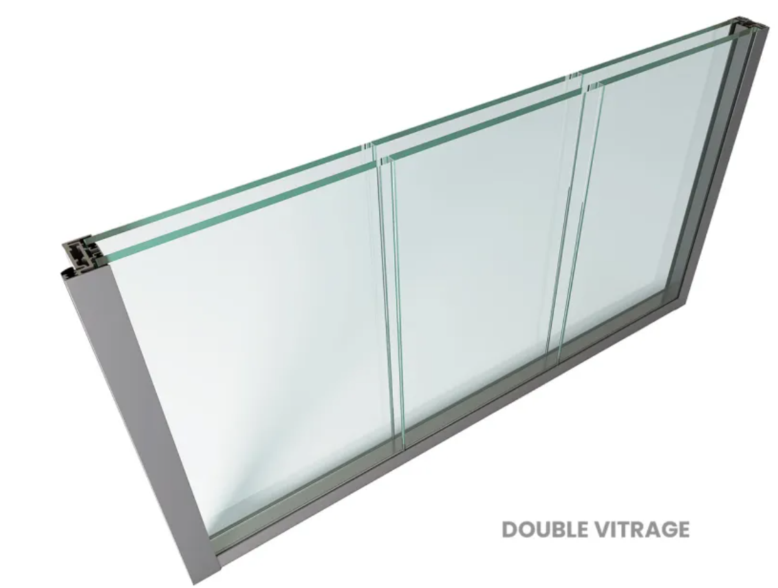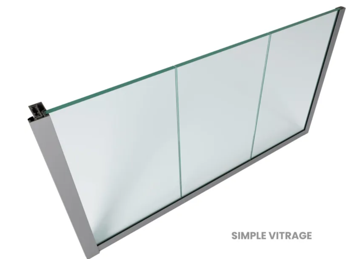 | Matériau(x) | Structure : Aluminium extrudé / Vitrage : Simple ou double vitrage (10-12 mm) |