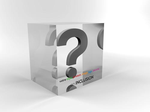 Pour la réalisation de vos produits personnalisables, trophées et tombstones , nous vous présentons la technique de l'inclusion acrylique. De l'idée de départ à l'emballage du produit fini, notre savoir-faire est à votre disposition.