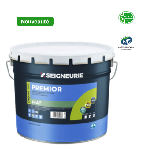 Le produit PREMIOR MAT du fabricant SEIGNEURIE classé dans la catégorie Revêtement mural > Enduits - peintures - lasures et vernis > Peintures de finition - décoratives est référencé dans la Matériauthèque digitale Materiaux.archi.