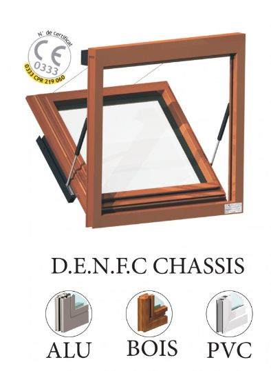 Depuis 2007, les châssis de désenfumage sont des équipements D.E.N.F.C, des dispositifs d'évacuation de fumée et de chaleur. Les ouvrants de la marque COMTRA FRANCE destinés au désenfumage naturel des sont des produits dûment certifiés.