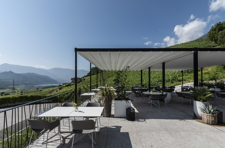 Pergotenda® Exyl est la pergola autoporteuse en aluminium qui décrit le mieux cette capacité de synthèse, fusion parfaite entre minimalisme et praticité.