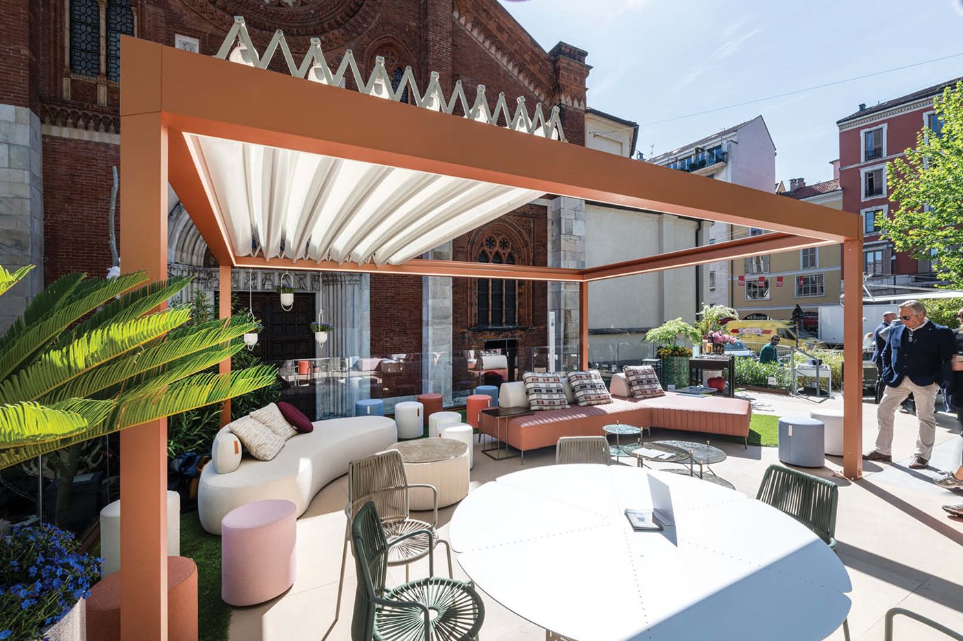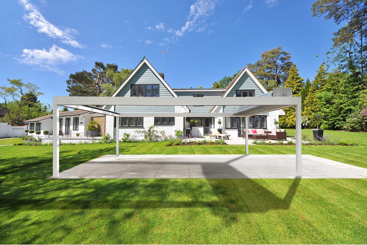 L'empaquetage de la toile rétractable est assuré par Butterfly, un nouveau système pantographe avec tiges en aluminium qui soutiennent les tubes de la toile. De cette manière, l'empaquetage du tissu se fait vers le haut, en laissant libre tout l'espace du dessous, contrairement au système Pergotenda® qui prévoit un pliage vers le bas. La technologie pantographe minimise considérablement l'encombrement de la toile lorsqu'elle est entièrement empaquetée, en réduisant les dimensions jusqu'à 40 % par rapport au système Pergotenda® de même taille.