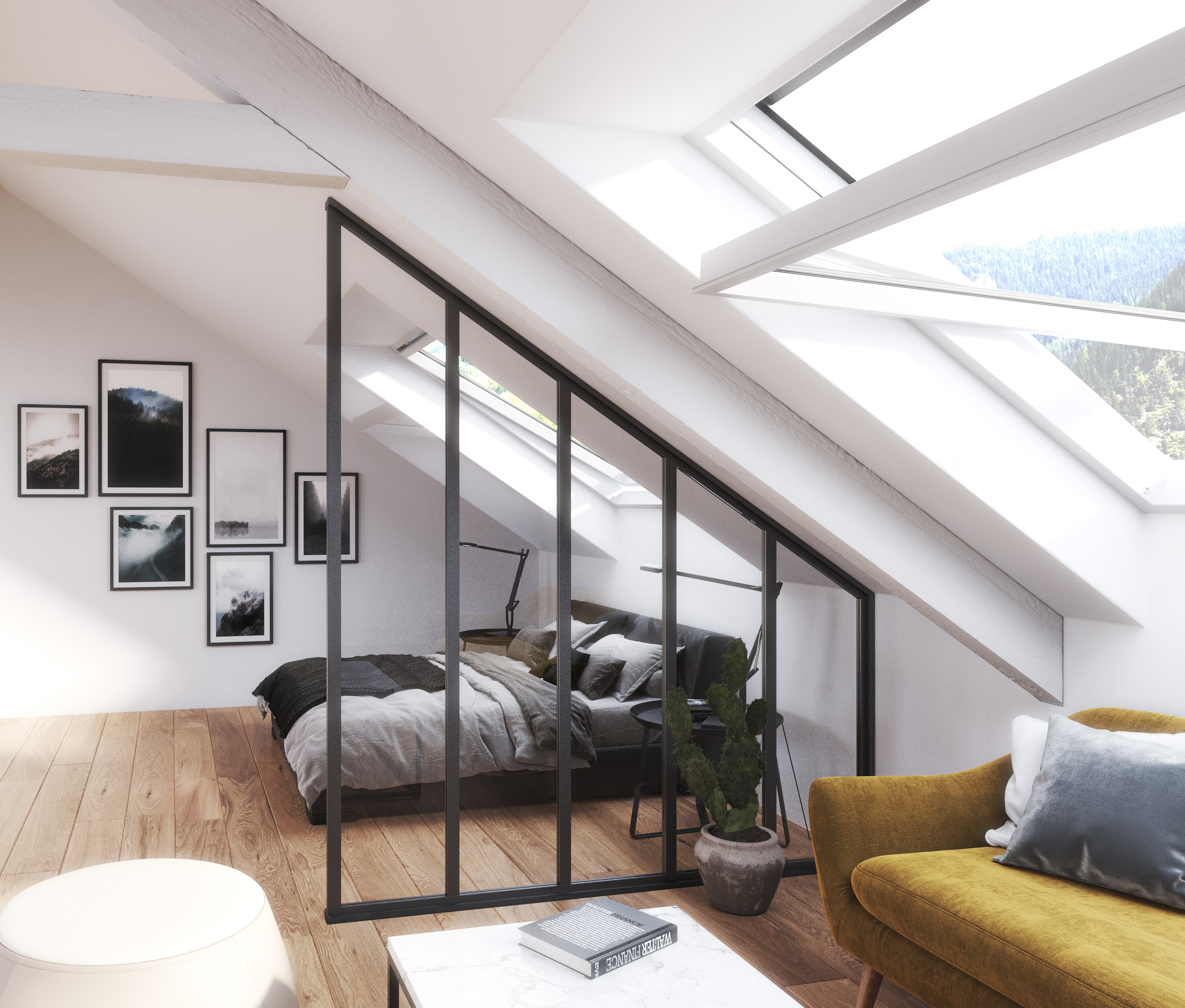 La verrière la plus versatile de notre gamme : large choix de couleurs de vitrage et de profils.