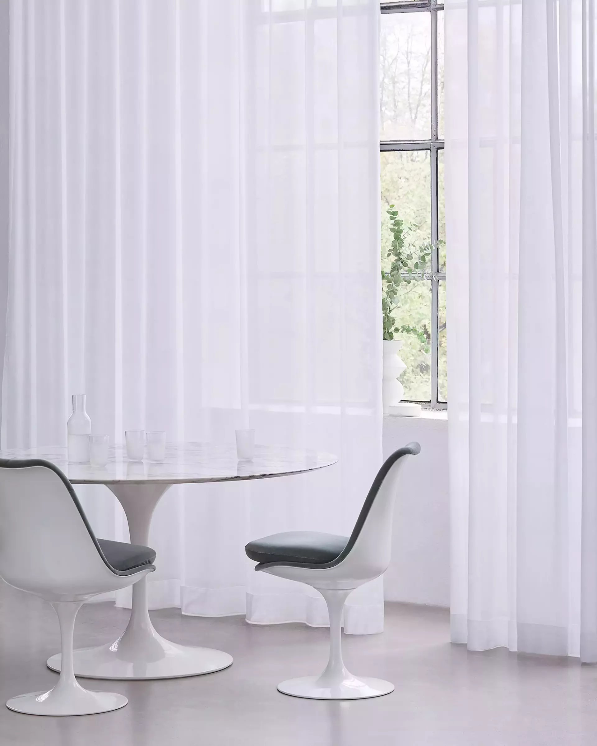 Tissu de rideau transparent; Élégant, naturel, drapé doux et facile d’entretien dans Trevira CS. Un classique et best-seller avec un système de couleurs complet et systématique. Il est fabriqué à Langenthal en utilisant les dernières technologies pour économiser de l’eau et de l’énergie afin de réaliser une production respectueuse de l’environnement.