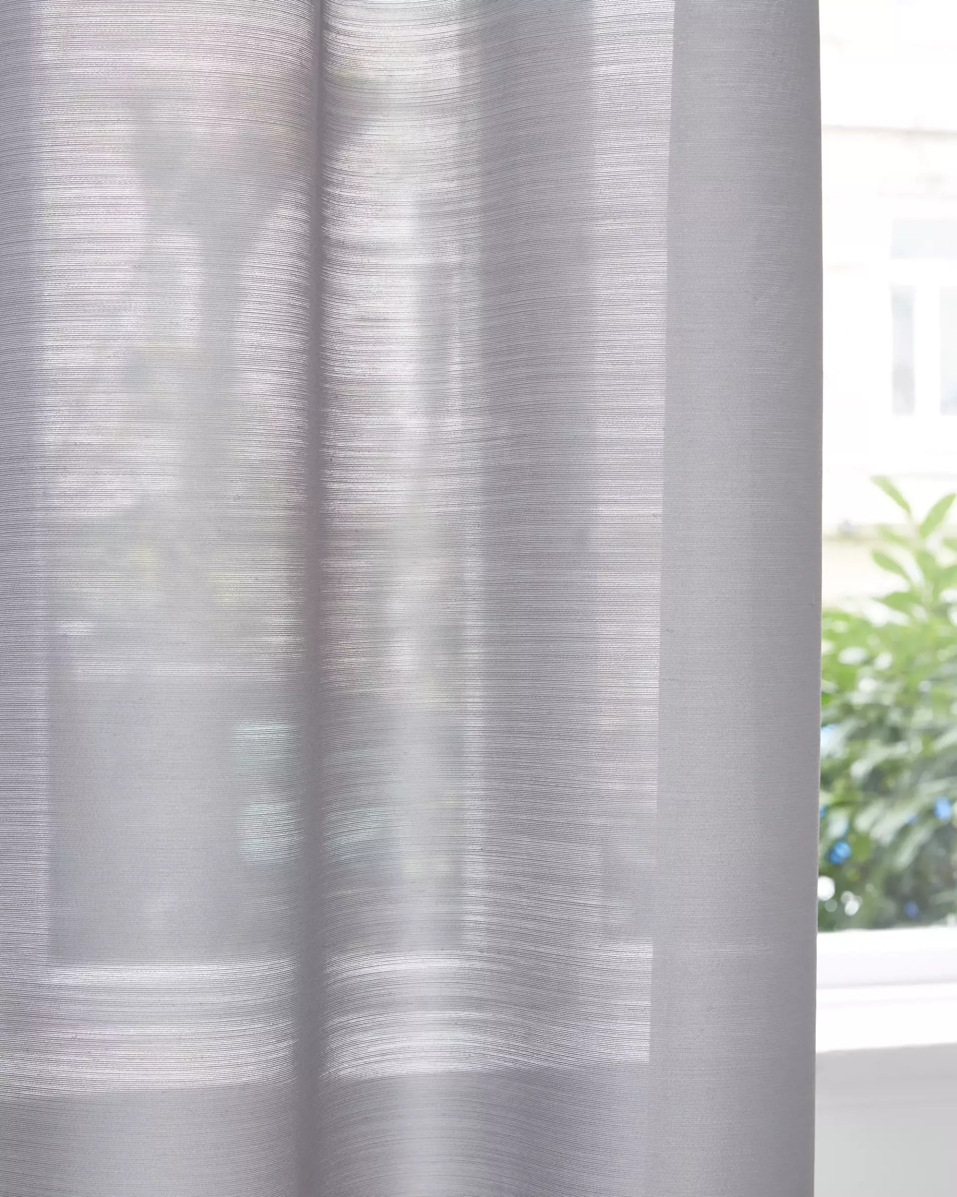 Protection contre l'éblouissement et la chaleur ; Tissu pour rideaux en aluminium métallisé à l'aspect et à la structure naturels. L'aspect résidentiel sur la face avant est créé par différents fils, la face arrière lisse et métallisée offre d'excellentes valeurs dans le domaine de la protection solaire et anti-éblouissante. Solution idéale pour réguler la lumière dans les espaces publics et privés.