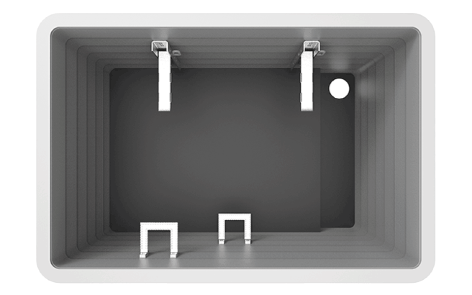 Le fond est réalisé à partir de panneaux PE 100 % recyclés. Solidement fixé à la section du fond pour créer un fond de propreté dans la chambre.