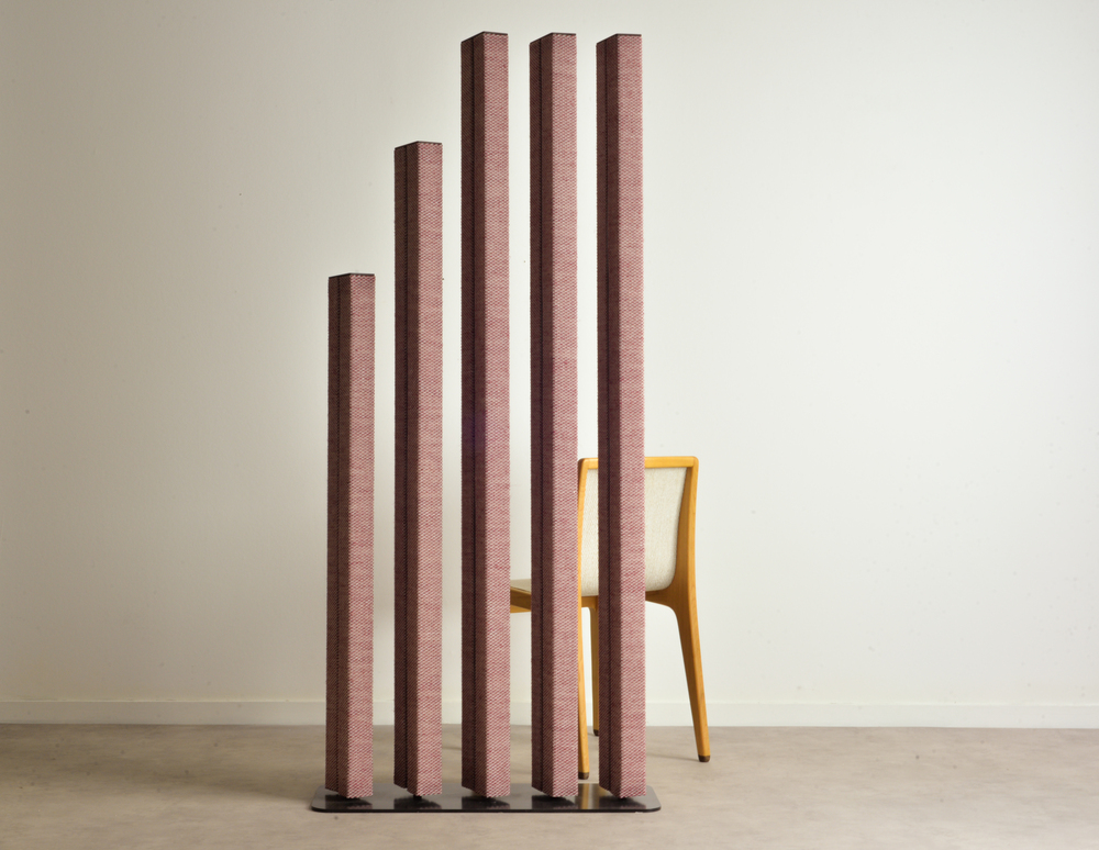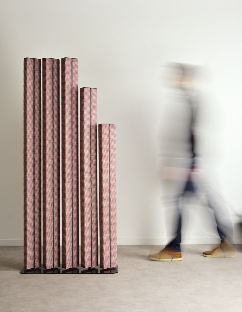 Les claustras acoustiques sont créés à partir d’une matière textile en Varian ® : un matériau hybride et biosourcé en fibre de lin.