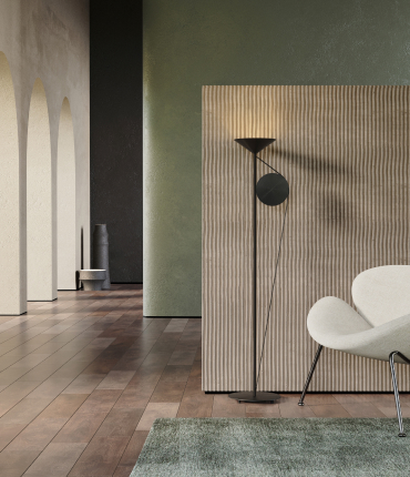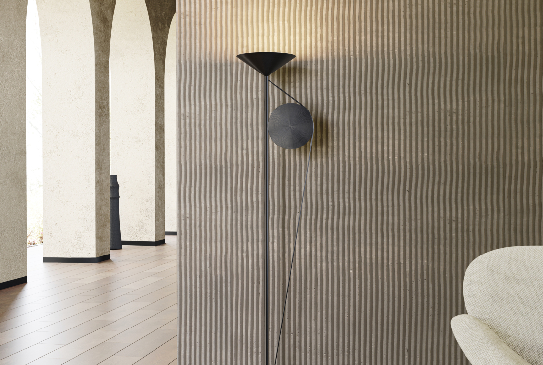 CERCLE & TRAIT, suspension best-seller de CVL, se décline désormais en un nouveau luminaire singulier : un lampadaire doté d’une puissante lumière indirecte.