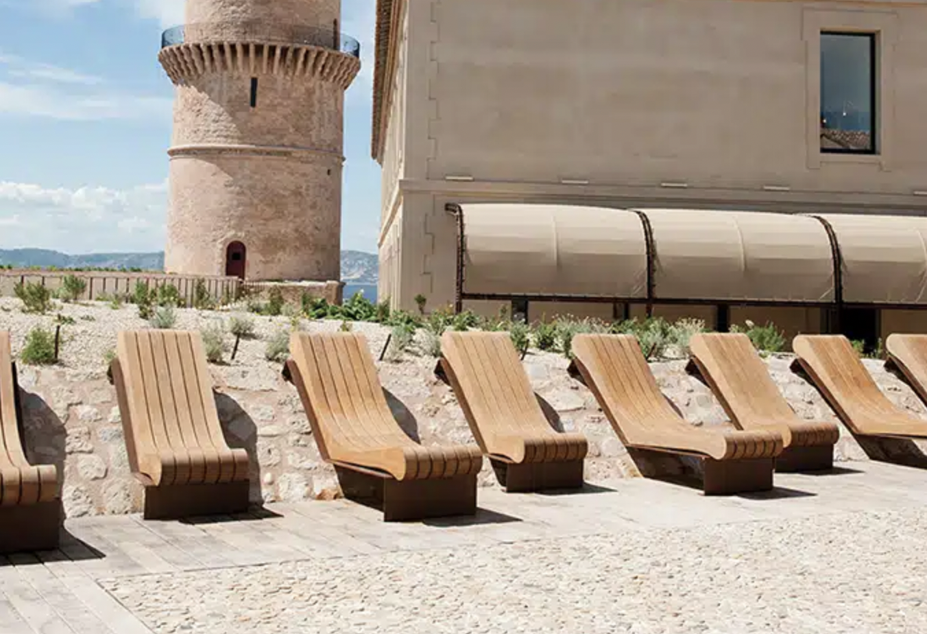 La chaise longue MIGRATION© a été imaginée par l'agence APS, primée à de multiples reprises aux Victoires du Paysage, dans le cadre de la réfection du Fort Saint-Jean, attenant au MUCEM, à Marseille. Comme le reste de sa collection de mobilier urbain, elle assume un design inspiré de la nature. Pour autant, elle offre une facette de plus à cet univers dont les produits assument tous un design assez différents, tout en conservant une ligne directrice claire : l'évasion et l'invitation au voyage. La chaise longue MIGRATION© est constituée d'une assise robuste composée de lattes de bois épaisses. Avec des courbes douces et arrondies, elle offre une ergonomie et un confort inégalé. Cette sorte de coussin de bois repose sur une structure métallique composée d'une fine tôle d'acier pleine qui s'efface volontiers derrière la chaleur du bois.