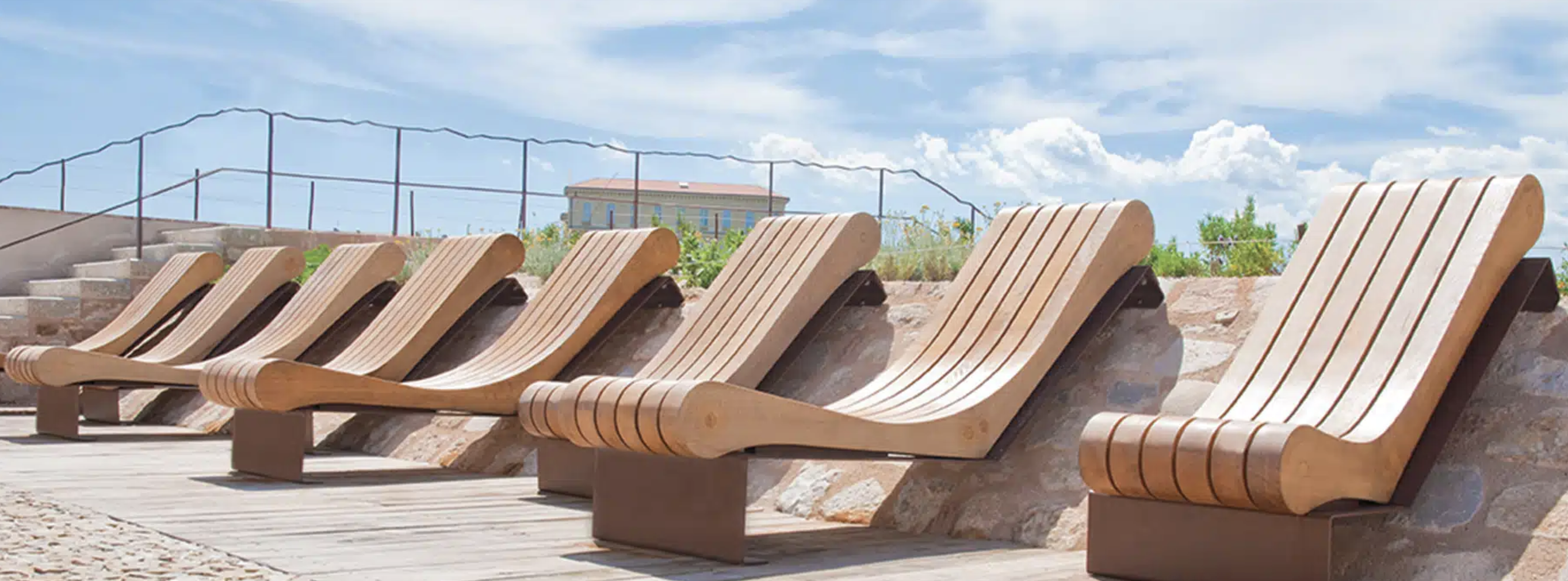 Le produit Chaise longue en bois MIGRATION | Mobilier Urbain - CYRIA de CYRIA est prescrit dans des projets de type : Habitat individuel .