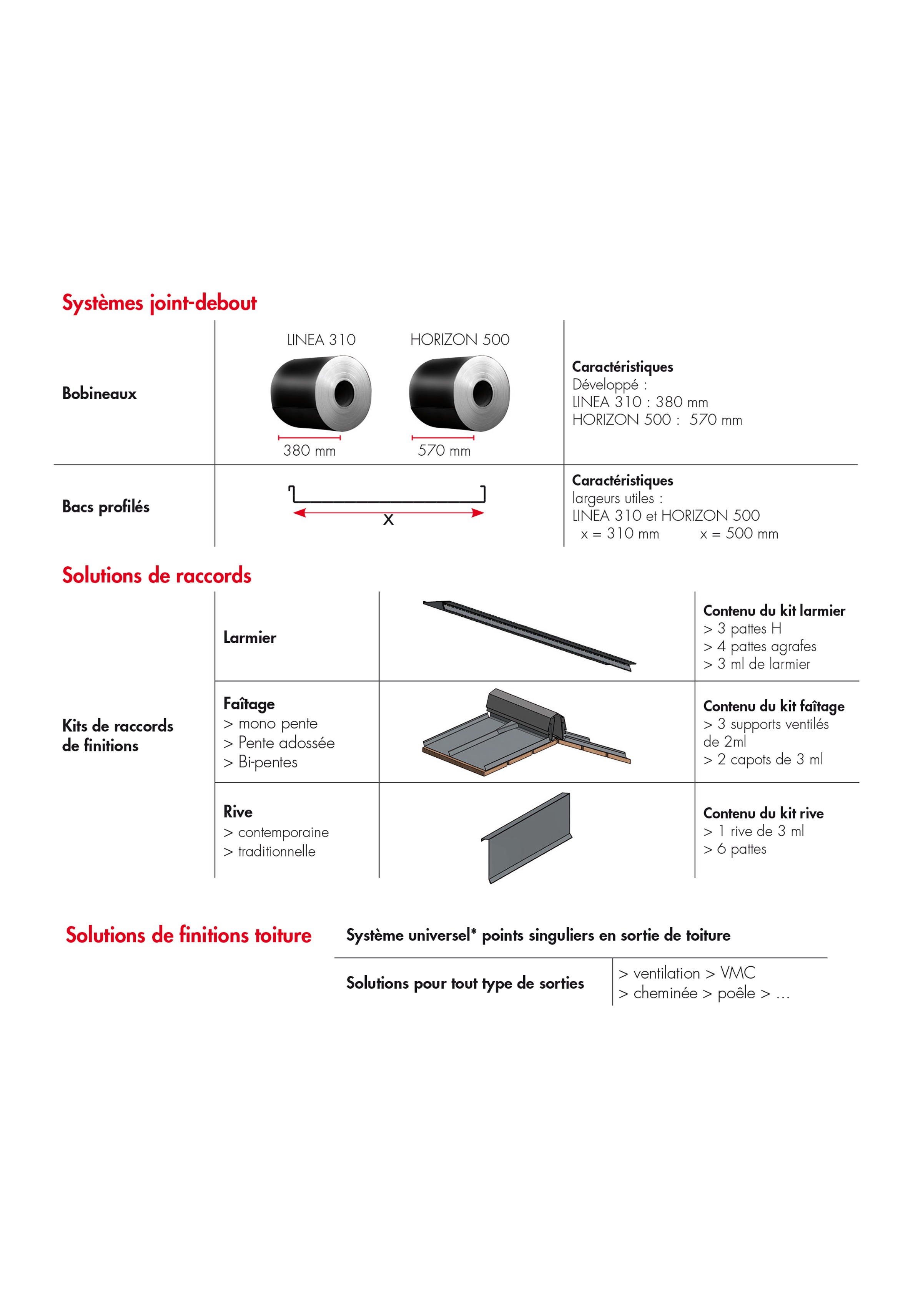 Pour en faciliter la pose, DAL'ALU a développé 3 solutions de raccords ainsi qu'une solution universelle pour tous les types de sorties de toiture.
