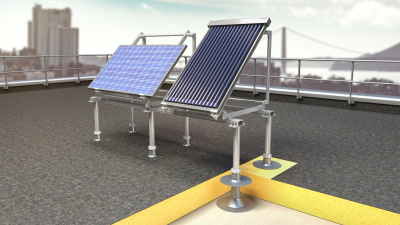 Helial D est une Structure sur mesure de supports réglables dans les trois axes pour panneaux solaires thermiques ou photovoltaà¯ques.