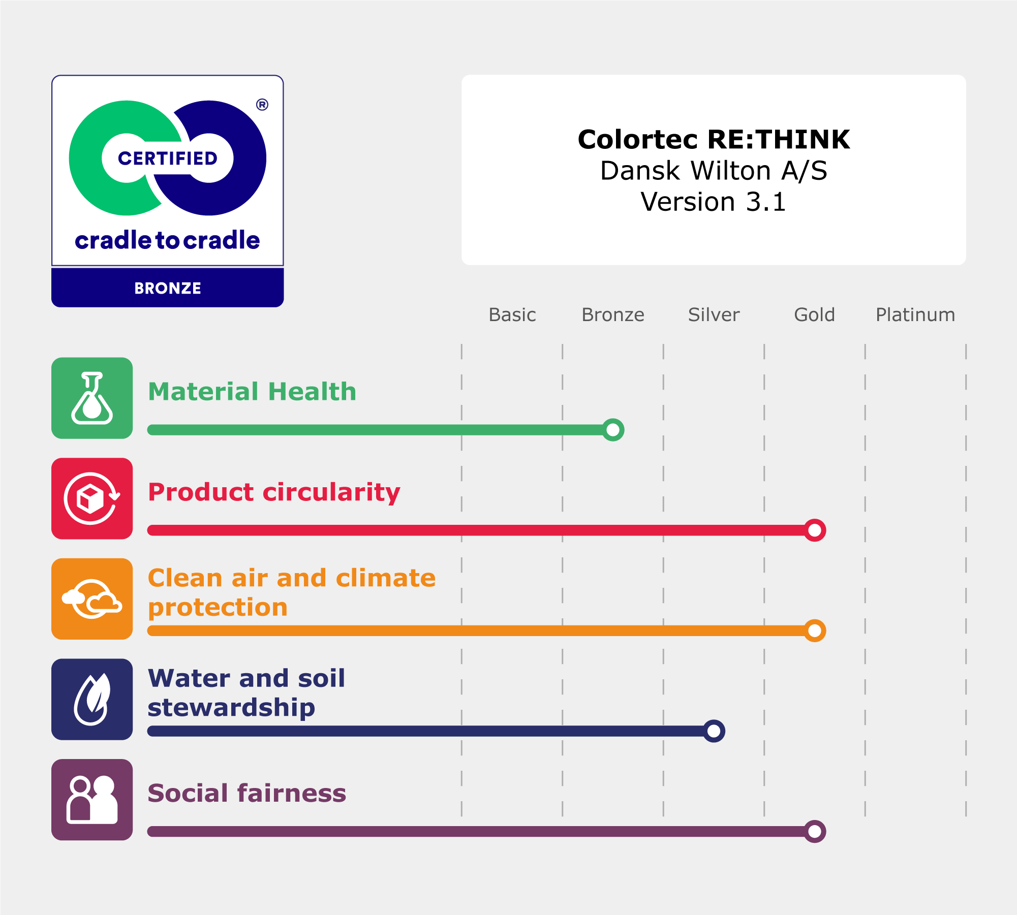 Les tapis Colortec RE:THINK de Dansk Wilton sont certifiés Cradle to Cradle®