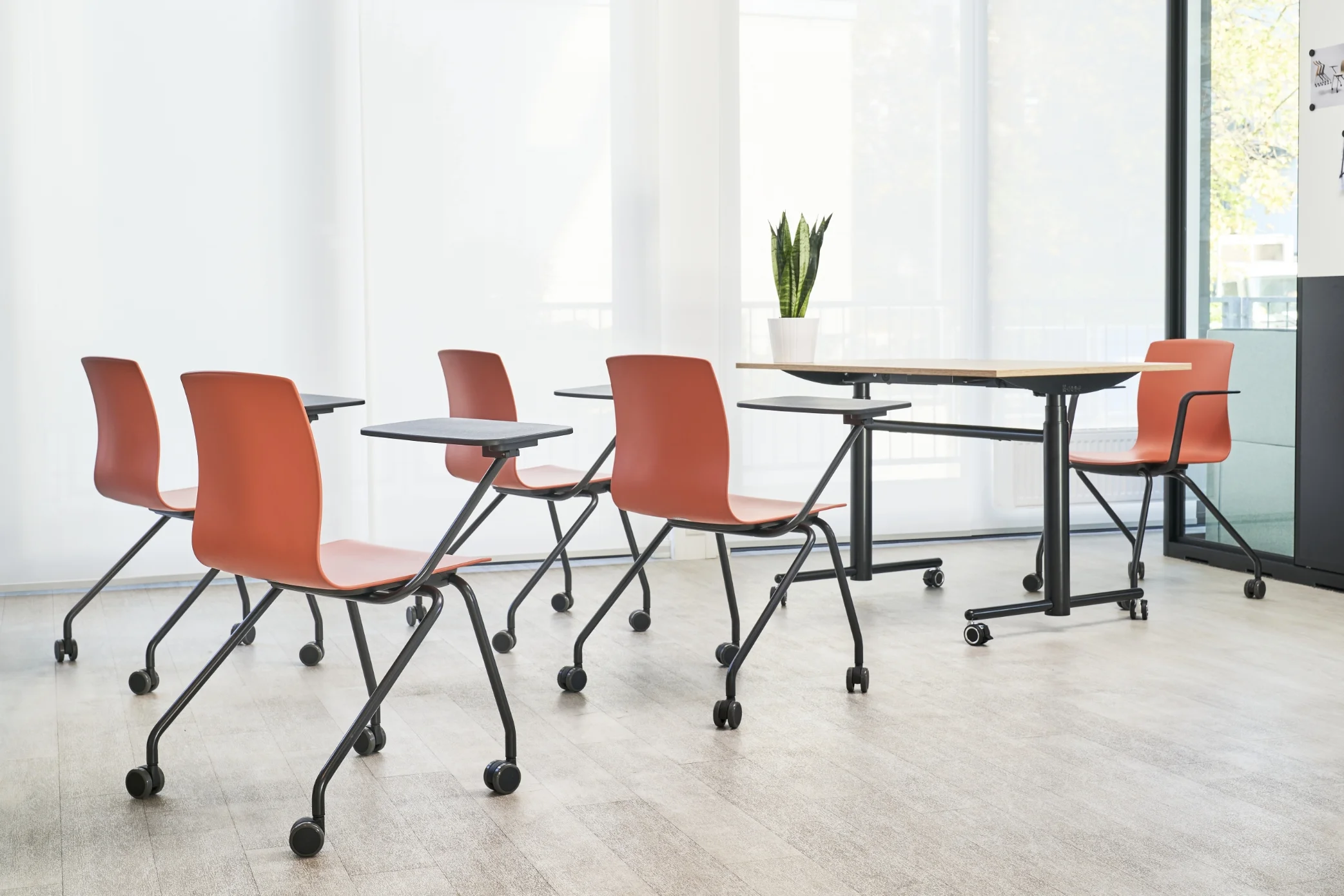 Que ce soit dans la cantine et les zones intermédiaires, Fiore met en avant son caractère diversifié dans les versions de piétement luge, piétement traîneau, quatre pieds, tabouret de bar ou encore siège encastrable. Il peut être rangé sans encombrement grâce à son empilabilité et son encastrabilité.