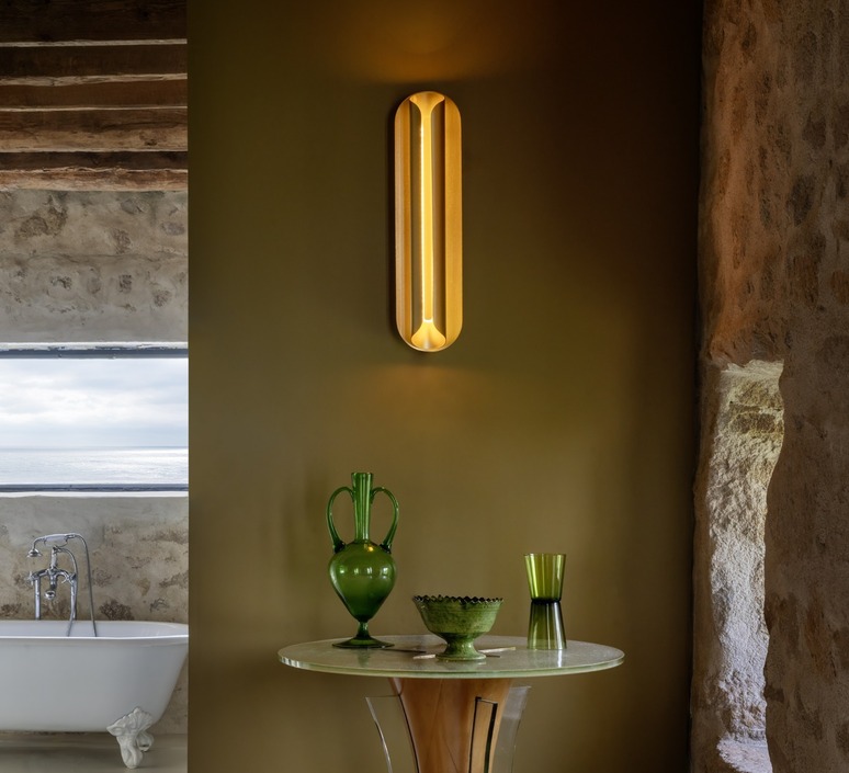 Composée de plaques d'aluminium anodisé recourbées, la structure de cette applique forme un écrin qui renferme la source lumineuse. Ce design permet une diffusion de la lumière via un fin flux central ainsi qu'une diffusion up-down.