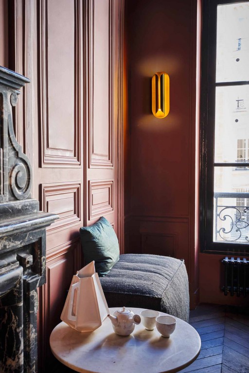L'applique murale Rosalie est le fruit de l'association de Julie Fuillet, architecte et Emeric Thiénot, spécialiste du luminaire, pour la maison DCW.