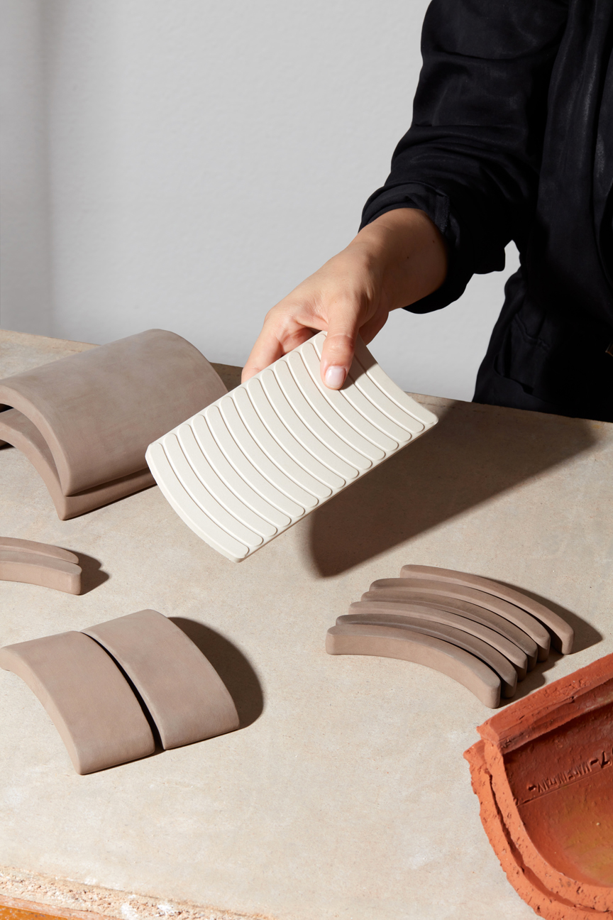 Le projet de collection de revêtements Wă nous ramène à l'Orient et naît des souvenirs du designer d'un voyage en Chine, inspiré par les tuiles des toits des pagodes et l'architecture typique des maisons des villages ruraux.