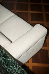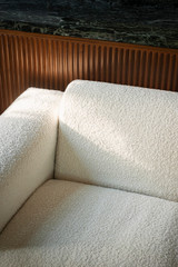 De minuscules boucles ondulent à la surface. La douce irrégularité du fil crée une boucle et une personnalité vivante. C'est à la sphère du vivant qu'appartient ce tissu, avec la beauté d'un animal magnifique, une fourrure épaisse et une individualité imprévisible. L'expressivité de Karakorum est faite de matière et de texture. Elle est en équilibre parfait entre une luminosité convaincue et une nature laineuse qui l'atténue ; entre l'étreinte de la fourrure et un grand sens de la modération qui ne pardonnerait jamais une extravagance.