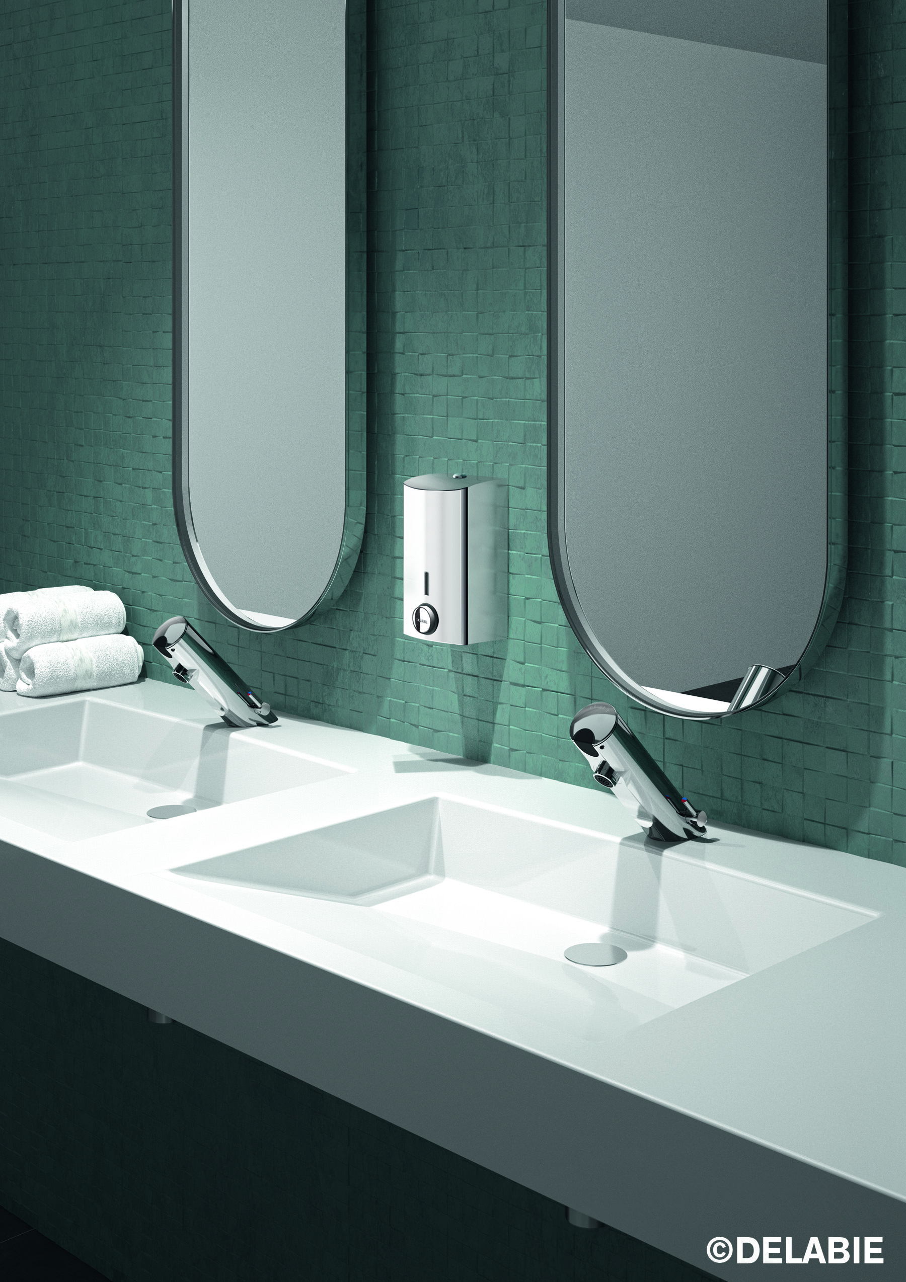 Le produit Distributeur de savon mural, 0.5 litre de DELABIE est prescrit dans des projets de type : Hôtellerie Restauration Tertiaire Commerce Industrie Écoles Bâtiments publics Sport - Stades Espace Public Spectacles - Musées Gare - Aeroports .